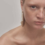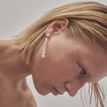 An ode to the perfectly imperfect – altering sizes of natural freshwater pearls in a beautiful dangling earring, made in 925 sterling silver.
