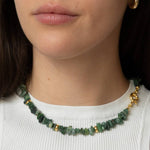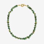 Statement chain with green prase-flakes. This necklace is pure joy, like a summer day at the sea. The green prase-flakes are skillfully attached in a mirrored fashion and crowned by a breathtakingly beautiful Baroque Pearl. The necklace is easy to style, especially with light, summery fabrics like linen. It emphasizes bright colors and flatters your summer tan. Every gemstone is hand strung by us in our Hamburg Atelier. Of course the choice is yours between a statement with the Baroque Pearl or without for a simpler look.