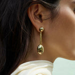 A bold pair of earrings that will draw attention from the moment you put them on. Assembled by a half sphere, custom chain and oval pendant, these earrings will move beautifully with your every maneuver.The earrings are crafted in 925 sterling silver, and the hollow shapes make them lightweight and comfortable to wear.