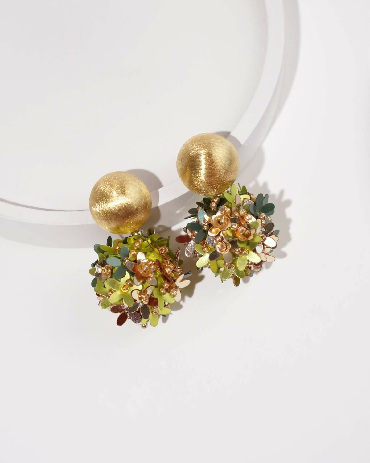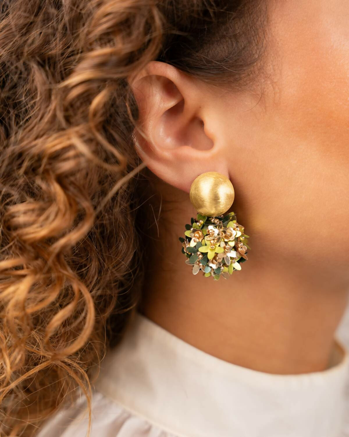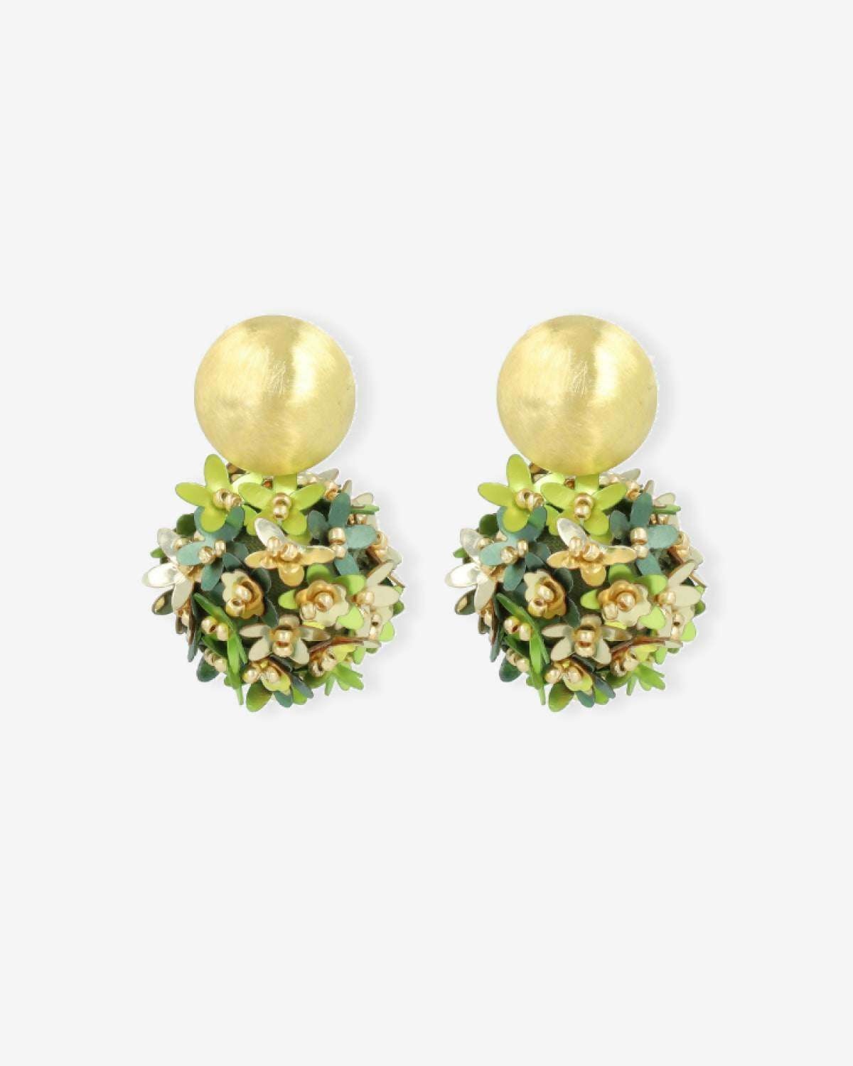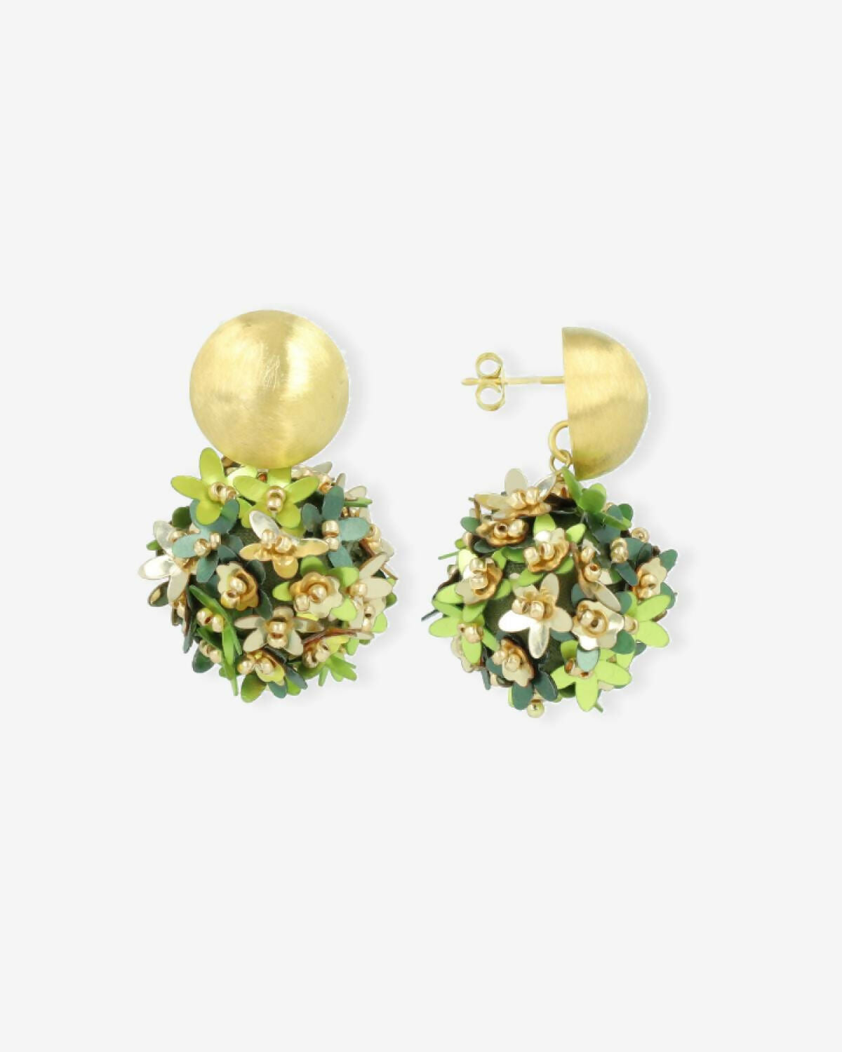 Sequin Flower Globe Mixed Green - Ohrhänger - Vergoldet