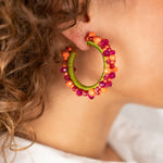 Eine der Trendkombinationen dieser Saison. Diese orangefarbenen und fuchsiafarbenen Ohrringe sind ein Must-Have. Mit ihrem geringen Gewicht und den auffälligen Farben kannst du diese Statements den ganzen Tag über tragen.