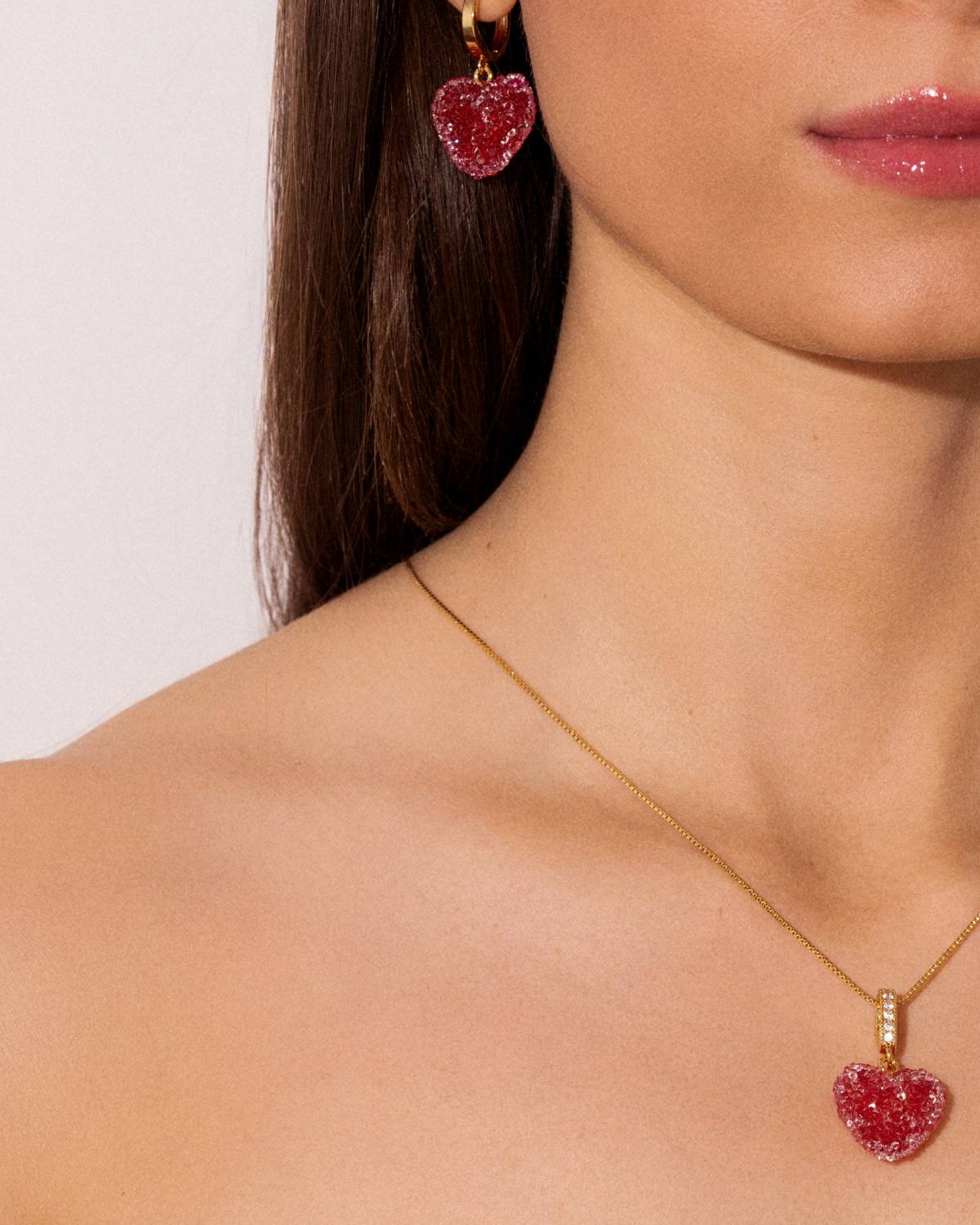 The Jelly Heart Rouge Pavé Pendant by Crystal Haze blends cheeky candy aesthetics with cool elegance. The red, crystal-textured heart glows under the light, while the pavé-set zirconia bail in sleek silver plating gives it a polished edge. A modern statement with playful energy – sparkling, fun, yet perfectly balanced.