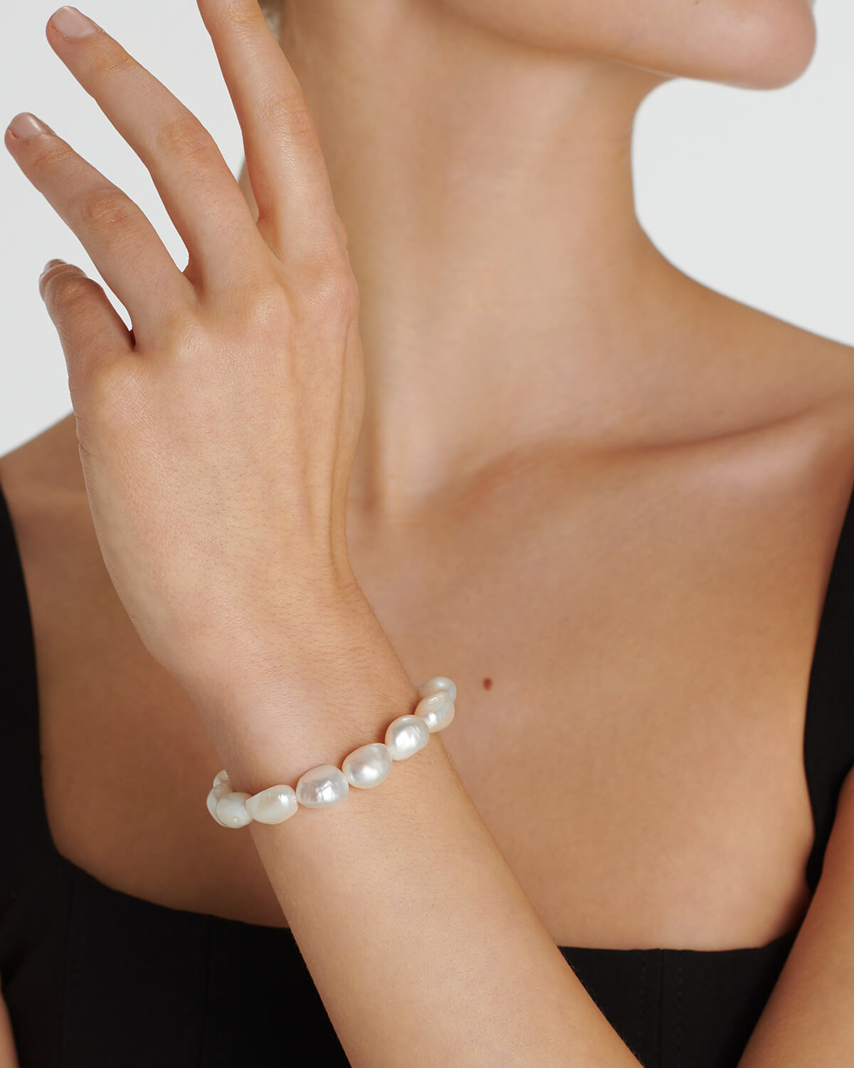 Elegant, classic and timeless - the pearl bracelet with freshwater pearl! Made from selected 925 silver and coated in precious 18k gold, this bracelet is the perfect accessory for work, a glamorous evening or simply for a get-together with friends.
