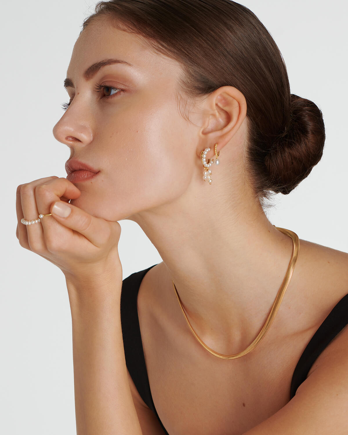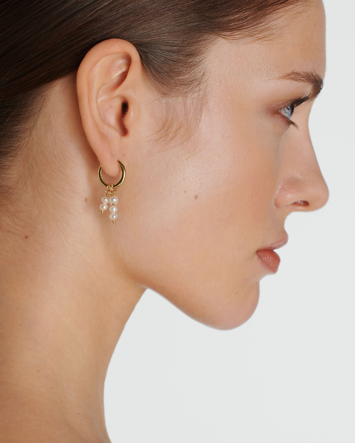 The highlight of your outfit! Add the perfect finish to any look with this enchanting mini hoop earring made from 18k gold-plated sterling silver. The freshwater pearls add class and elegance to this piece of jewelry.
