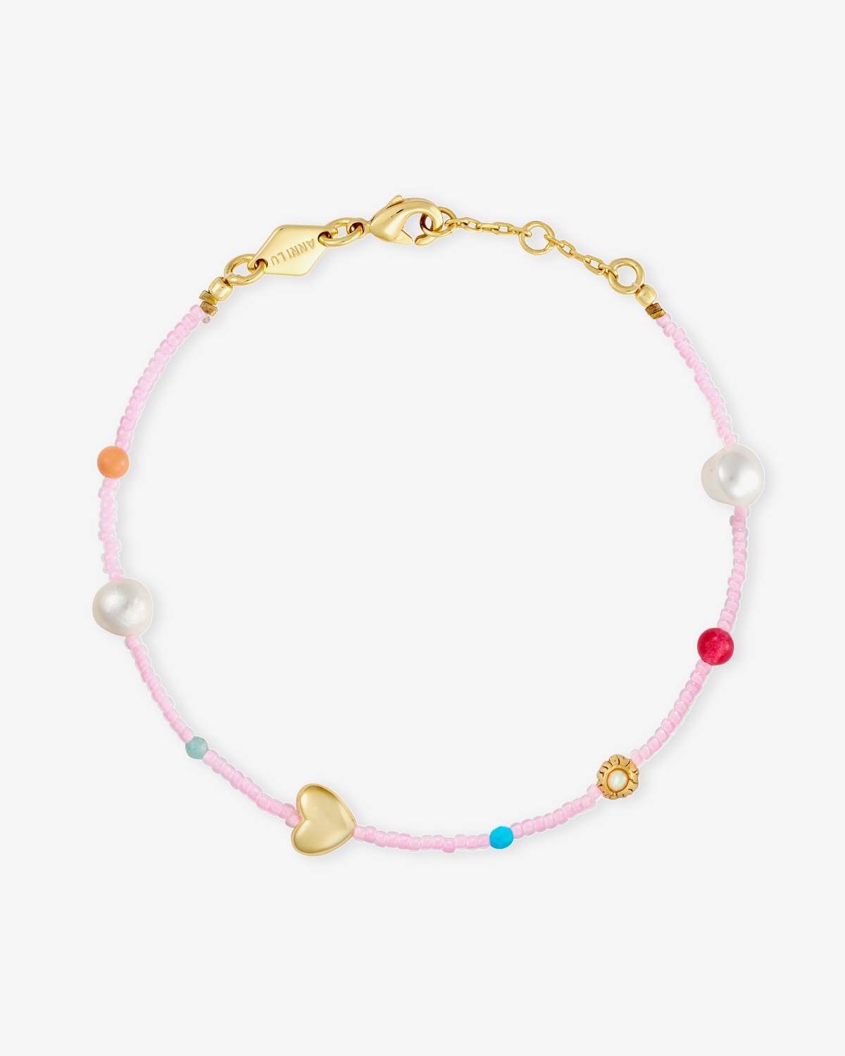 Delicate, playful & full of love! Fine pink pearls, golden details and sweet highlights such as a gold-plated heart and shimmering freshwater pearls make this bracelet a must-have for romantic looks. Perfect solo or in a stack - for a touch of summer on your wrist!