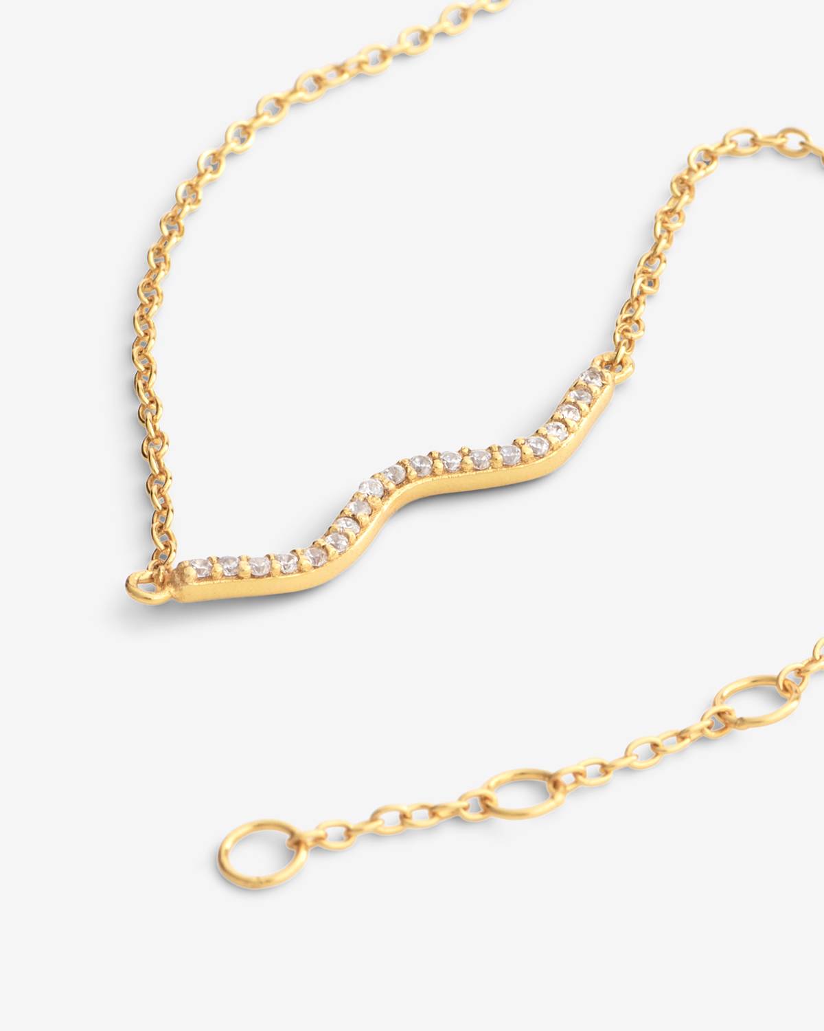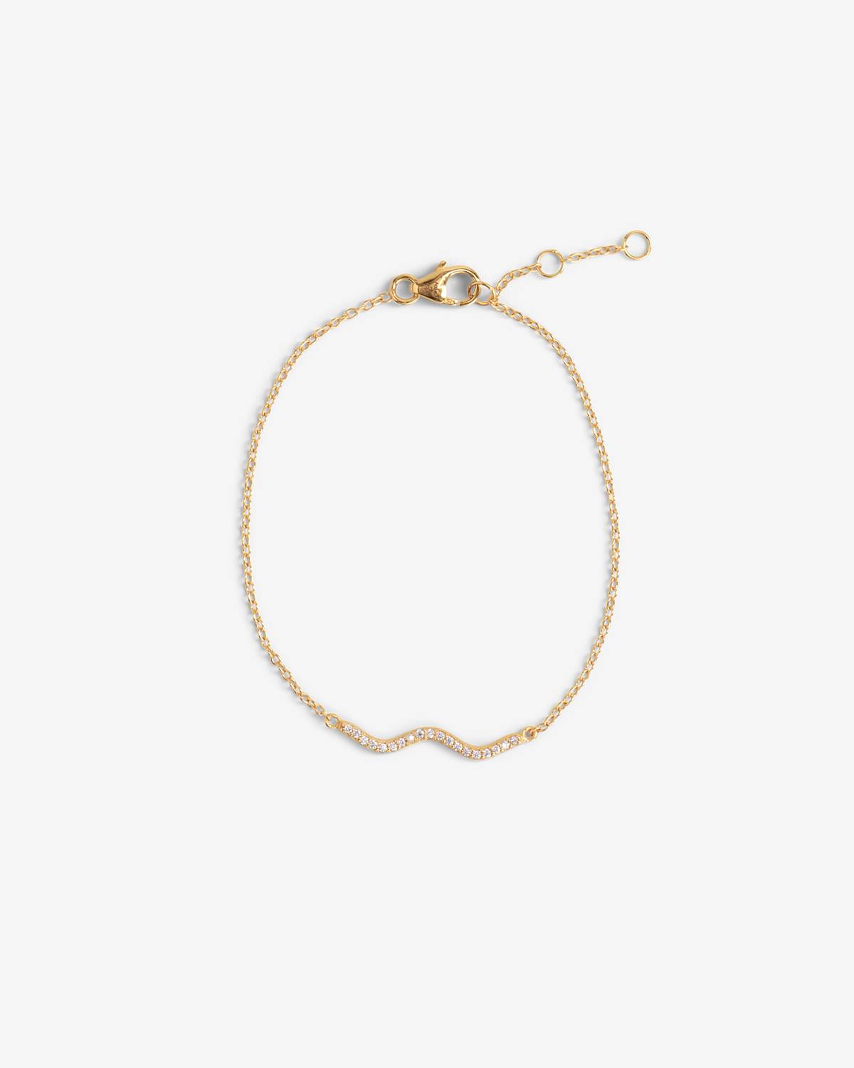 Lili brings its iconic wave design to your wrist. This bracelet in 18ct gold plating, finished with White Zirconia, feels delicate yet distinctive. A jewelry piece that makes its mark with clean lines and fits easily into any style.