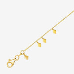 Ein filigranes 585 Gold Armband, das Dein Handgelenk schimmern lässt.Dieses Armband besteht aus asymmetrischen und beweglichen Rauten Anhängern und schmiegt sich perfekt an. Das verspielte Design ist das perfekte Stück für einen spannenden und eleganten Boho Look. Die Länge kann zwischen 16 und 18cm variiert werden. Trage das Armband zur passenden Rauten Halskette.