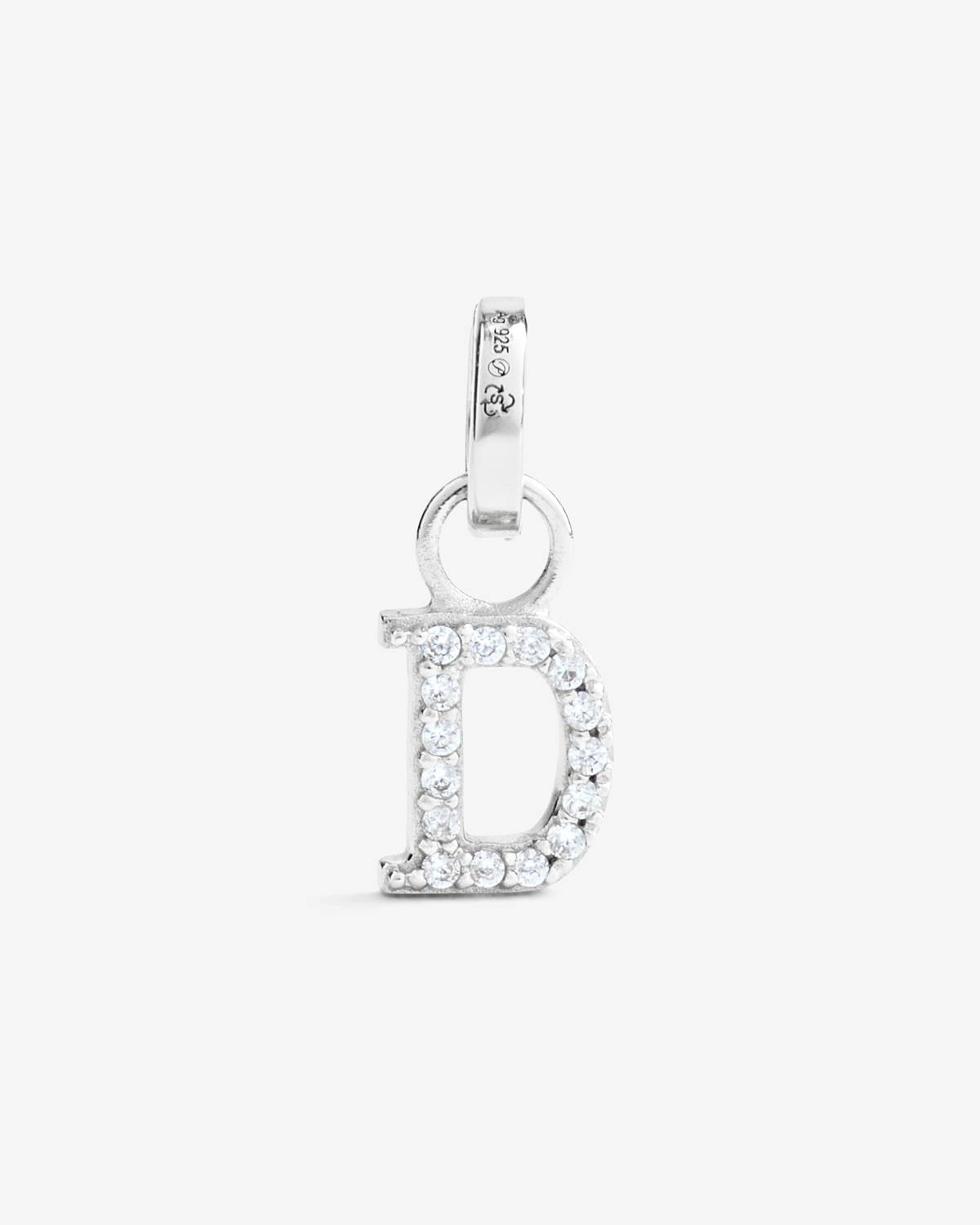 This pendant adds a personal touch to any necklace. The silver D is made from fine recycled Sterling silver. Delicate zirconia stones add a playful sparkle to the neck or wrist. Thanks to the small eyelet, the letter charm from Pompidou can be attached to any favorite chain.