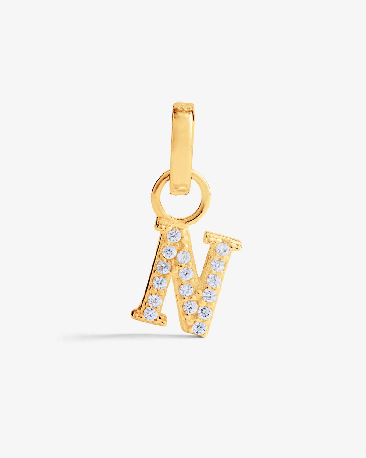 This sparkling N by Pompidou exquisitely individualises necklaces and hoops. The letter charm is made of recycled 925 silver, gold-plated and decorated with zirconia gems. Thanks to the small carabiner, the charm can quickly be attached to your favourite jewellery piece to spread its message with a unique sparkle.