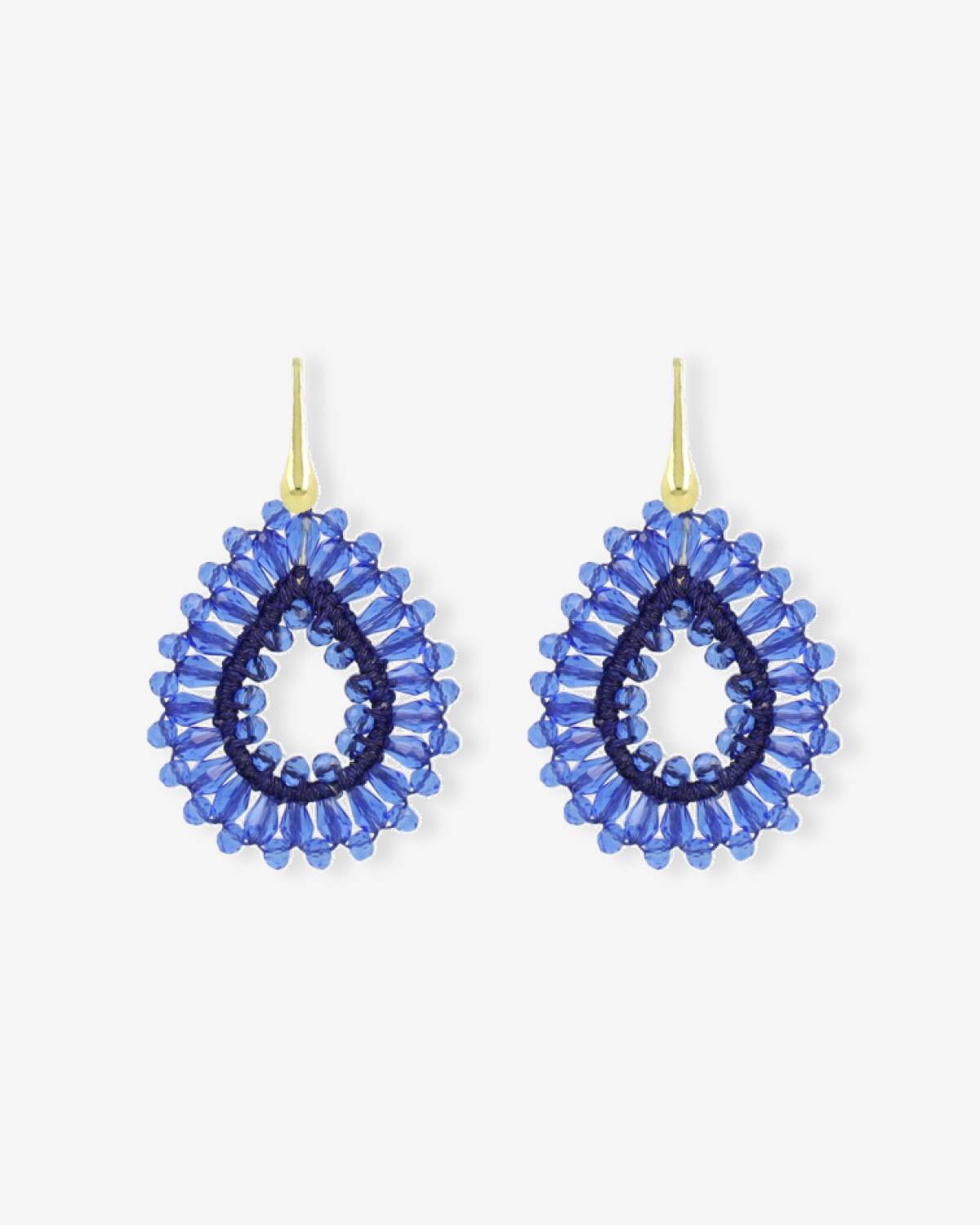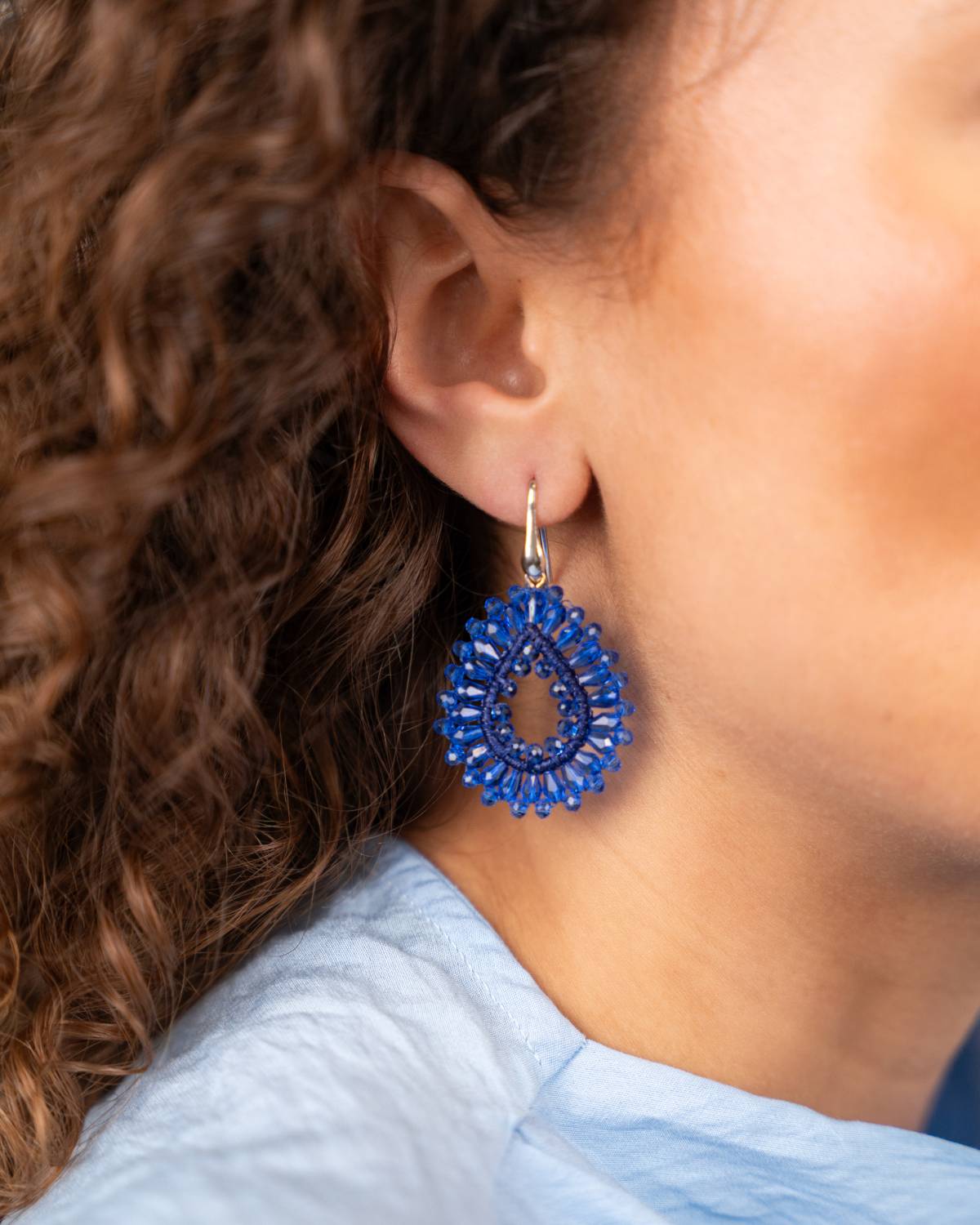 Ocean vibes only! The Robin Drops bring an extra dose of coolness to your ear with their glittering crystals in deep blue. The drop design plus 18ct gold-plated Sterling silver? An absolute summer must-have - whether beach party or rooftop date.