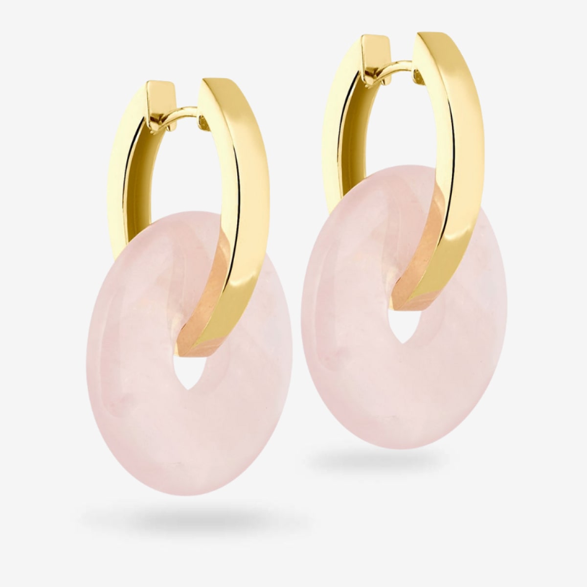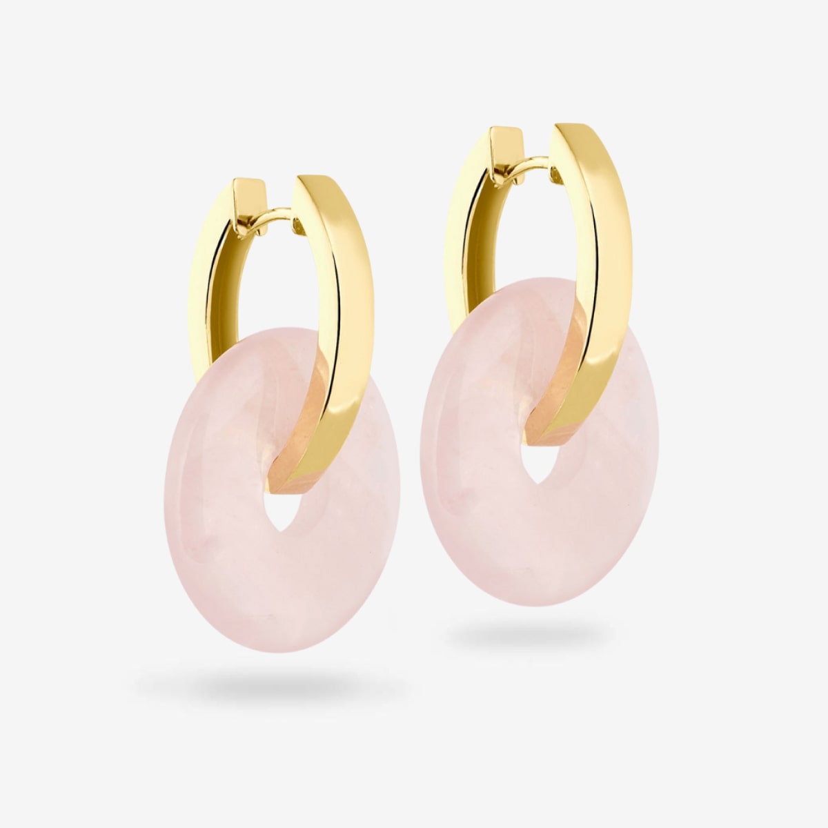 Oval Creoles + Double Big Rose Quarz - Creolen - 18k vergoldet