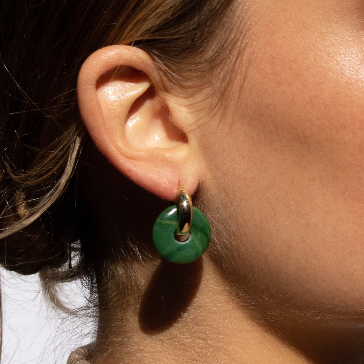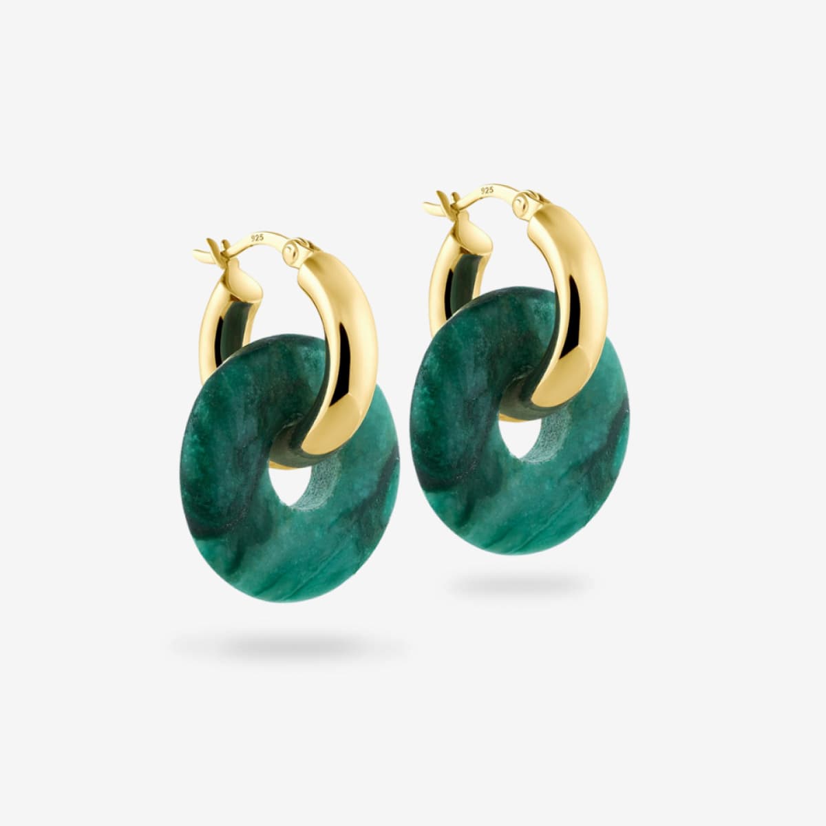 Round Creoles + Double Medium Prase - Creolen - 18k vergoldet