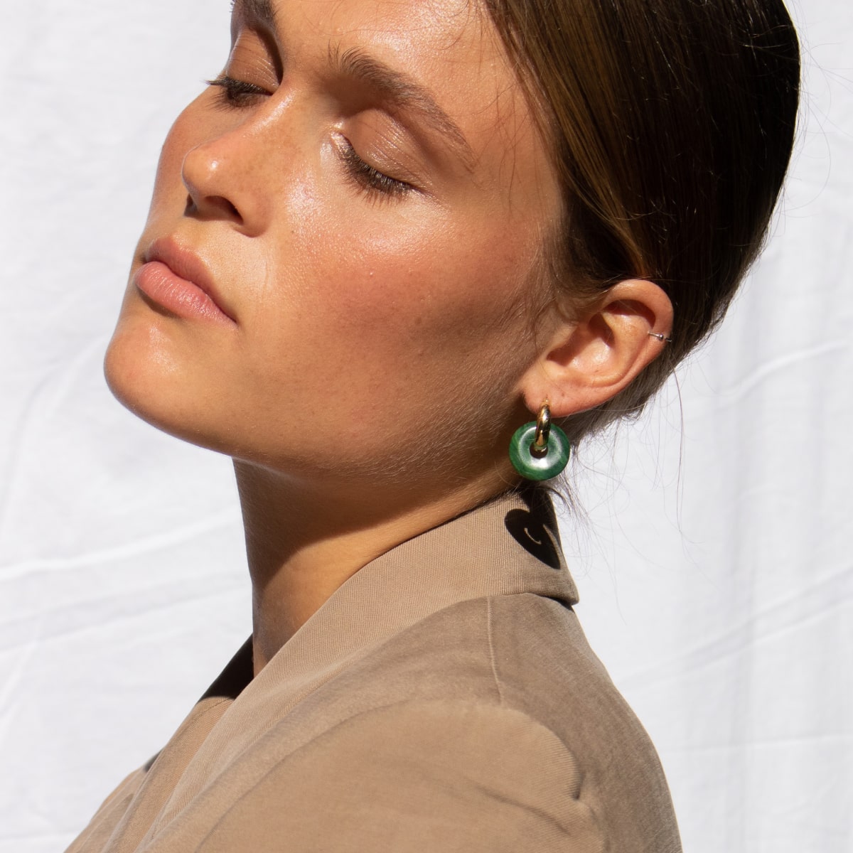If you love our mix and match products as much as we do, then our Prase hoops will make your heart beat faster. With these earrings, you have the choice between two different hoop models: oval or round. You also have the choice of the gemstone-pearl version or the gemstone version. You can also wear the hoop earrings completely plain without a gem. Your style. You decide. If you prefer it symmetrical and colored, then we recommend the prase gemstone for both sides. If you prefer it striking and asymmetrical, you can also combine the pearl with the gemstone. Because the gemstone is a natural product, the color of the stone may be slightly different from the pictures. There are two different pearls to choose from. The Keshi pearl is lighter and flatter. The Baroque pearl is heavier and bulbous in shape - and therefore more conspicuous in appearance. The highlight of the Prase hoops are the different colors of the gemstones. Each gemstone is a natural product, each has its own individual color. That makes the Prase hoops unique. Each earring is enchantingly beautiful in its own unique way. Like their wearers. These earrings just always fit: whether it's casual jeans or a chic evening look. The prase gemstone gives every look a touch of extravagance. We put great importance on the quality of our materials - this also applies to our pearls. When shopping, we, therefore, pay close attention to the respective luster-shine and the layer thickness of the pearl. Both are important quality features.