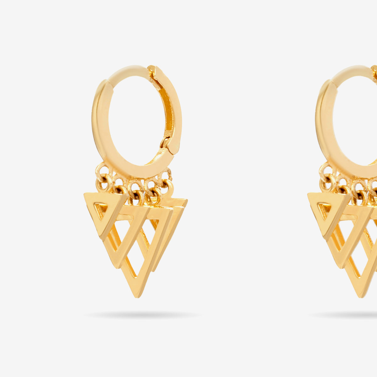 Diese schimmernden 585 Gold Creolen sind ein absolutes Must-have. An einer Gold Huggie Creole reihen sich die Anhänger in Form von Dreiecken aneinander und sorgen für Lichtreflexionen. Ein filigraner Ohrring, der zu jedem Outfit passt und sich mit anderen Stücken aus der Kollektion leicht kombinieren lässt. Das verspielte Design ist das perfekte Stück für einen spannenden und eleganten Boho Look.