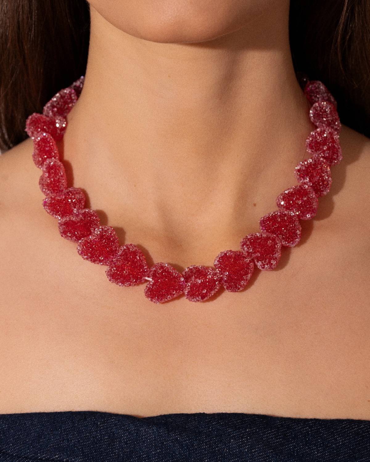 Sweet, cheeky, and totally addictive: the Jelly Heart Rouge Necklace by Crystal Haze brings pure candy vibes to your neckline with deep red, glittering heart beads. Each heart sparkles like crystallized sugar, framed in luxurious 18ct gold plating. A playful statement piece that fuses pop culture with glamour – effortless yet bold.