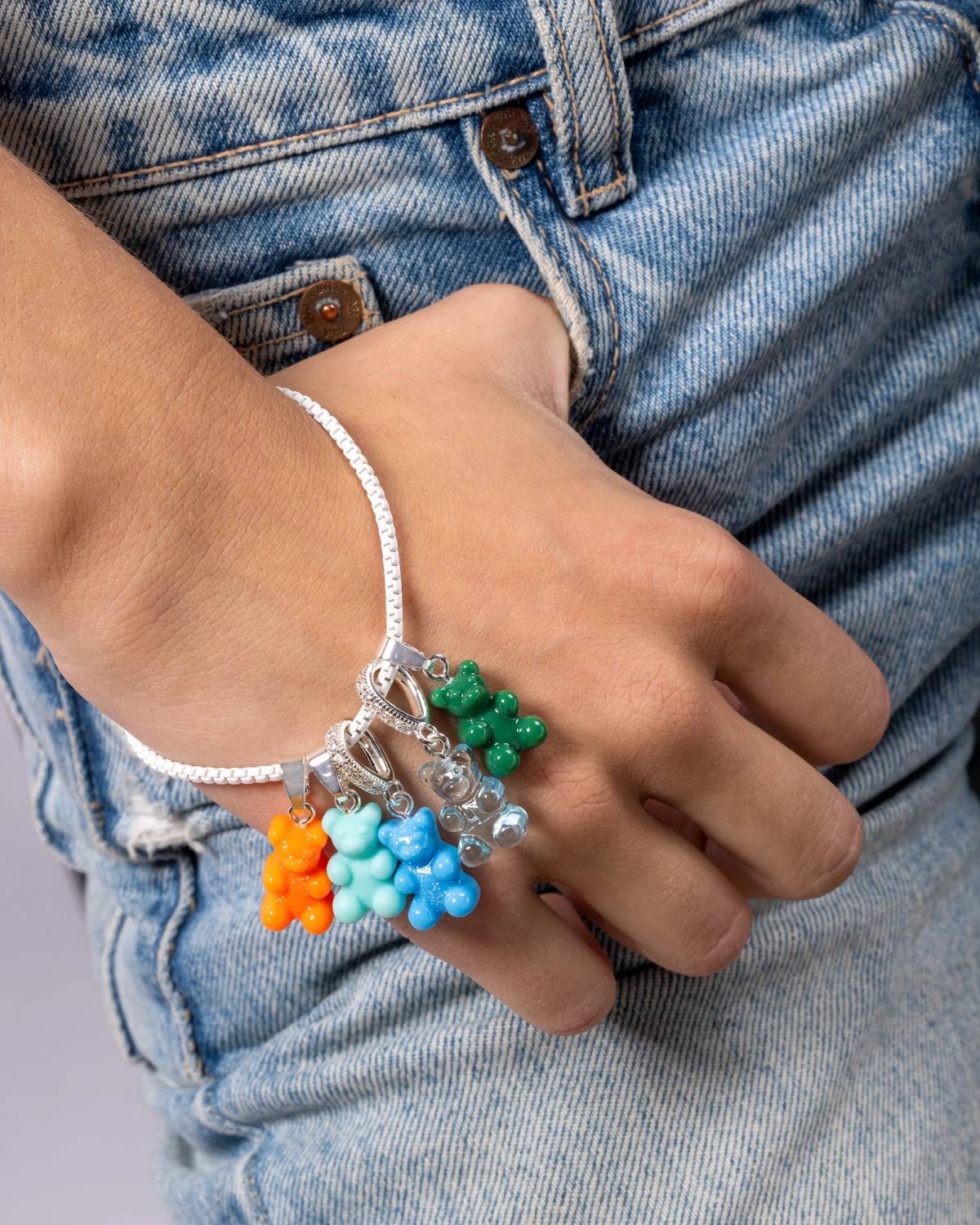 This cute pendant from Crystal Haze impresses with its nostalgic gummy bear design. It can be combined in a variety of ways to complete any outfit. Whether worn on necklaces, bracelets or anklets - the sparkling zirconia stones, 925 silver-plated brass and high-quality acetate make it a real eye-catcher.
