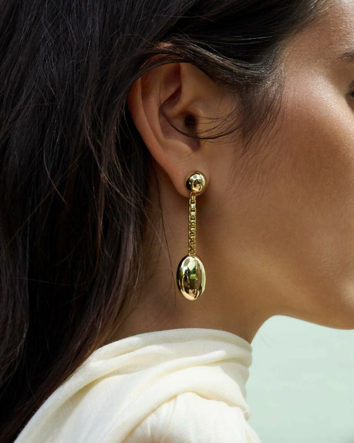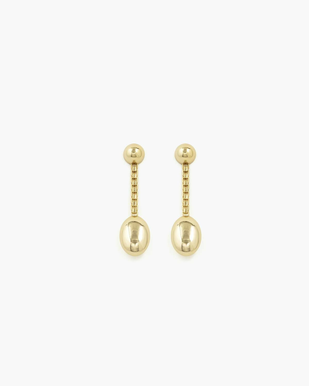 A bold pair of earrings that will draw attention from the moment you put them on. Assembled by a half sphere, custom chain and oval pendant, these earrings will move beautifully with your every maneuver.The earrings are crafted in 925 sterling silver, and the hollow shapes make them lightweight and comfortable to wear.