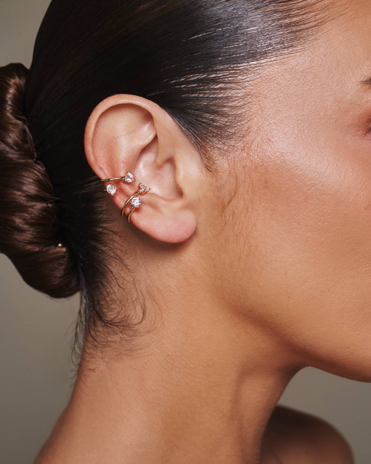 The Eraz Ear Cuff plays with flowing lines and contemporary shine. Its organically curved shape sits softly on the ear, while sparkling zirconia add subtle highlights along the 14ct gold-plated surface. The open design requires no piercing and feels both bold and elegant – a creative statement balancing lightness and expression.