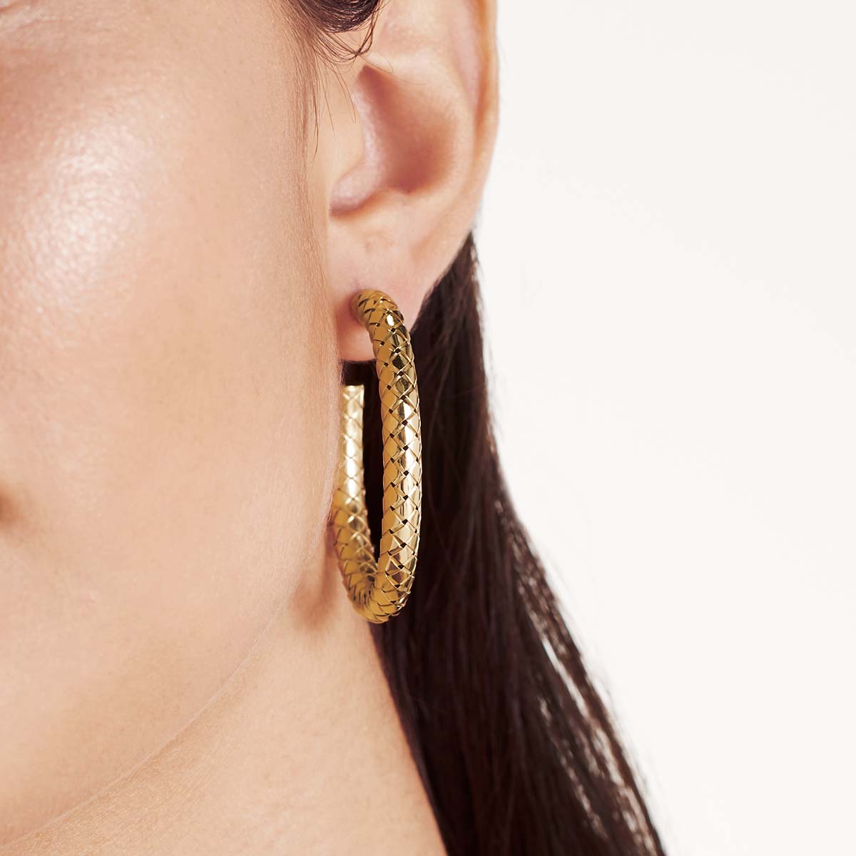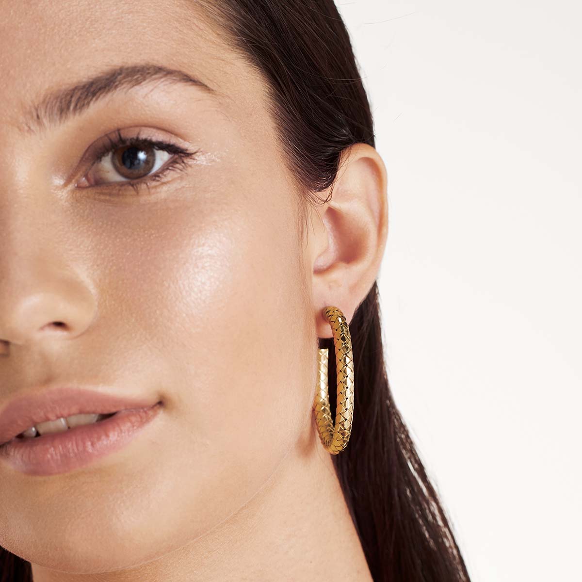 You will fall in love with these earrings! These golden oval hoops are medium-sized and inspired by a cobra.