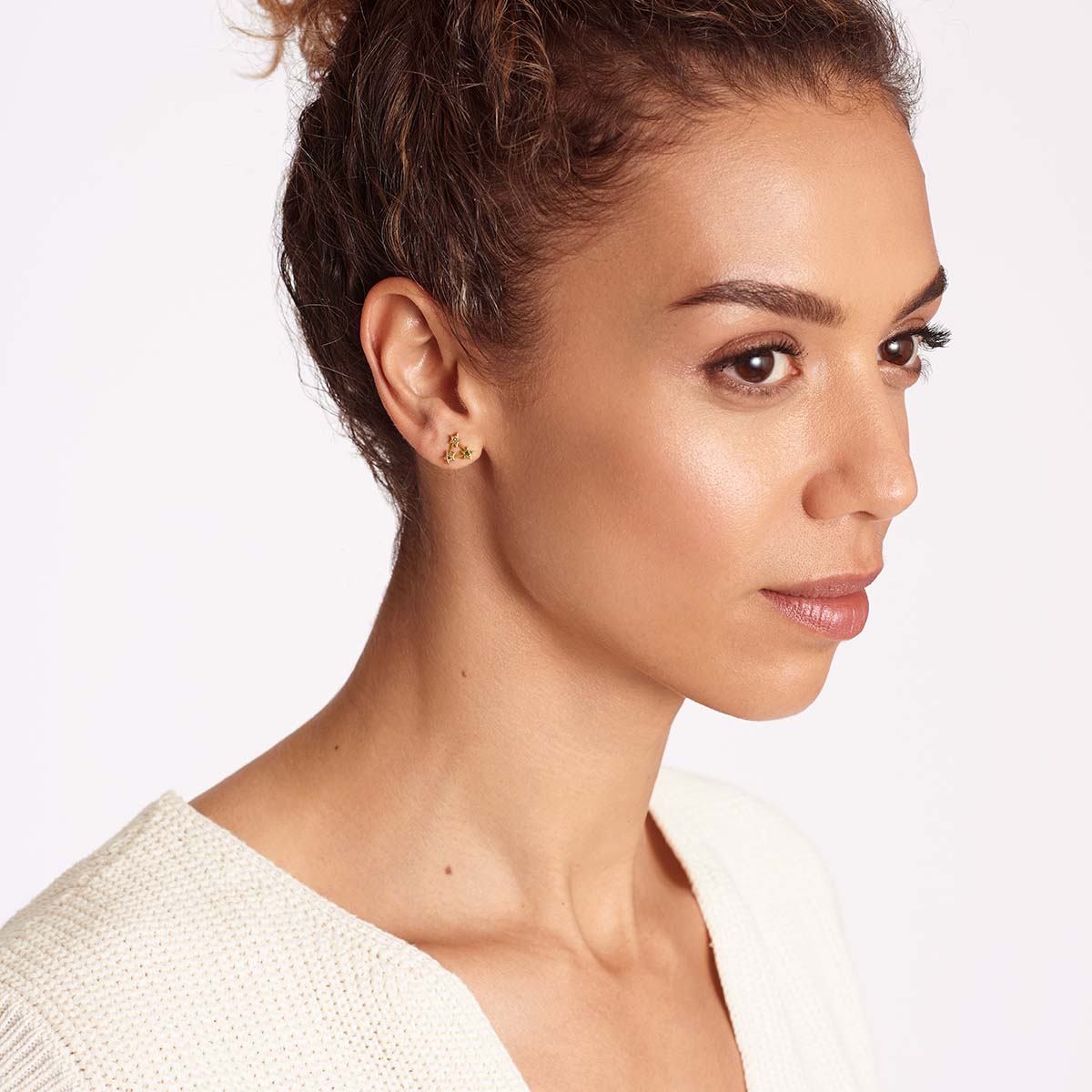 585 Gold Ohrringe mit handgesetzten Edelsteinen. Ein Blick in den Sternenhimmel! Smaragde, Rubin und Saphire verteilen sich in Form von kleinen Sternen auf Deinem Ohr und funkeln. Diese Ohrringe glänzen allein und lassen sich auch hervorragend mit anderen Schmuckstücken kombinieren. Ein magisches Gold-Schmuck Geschenk fürs Leben.