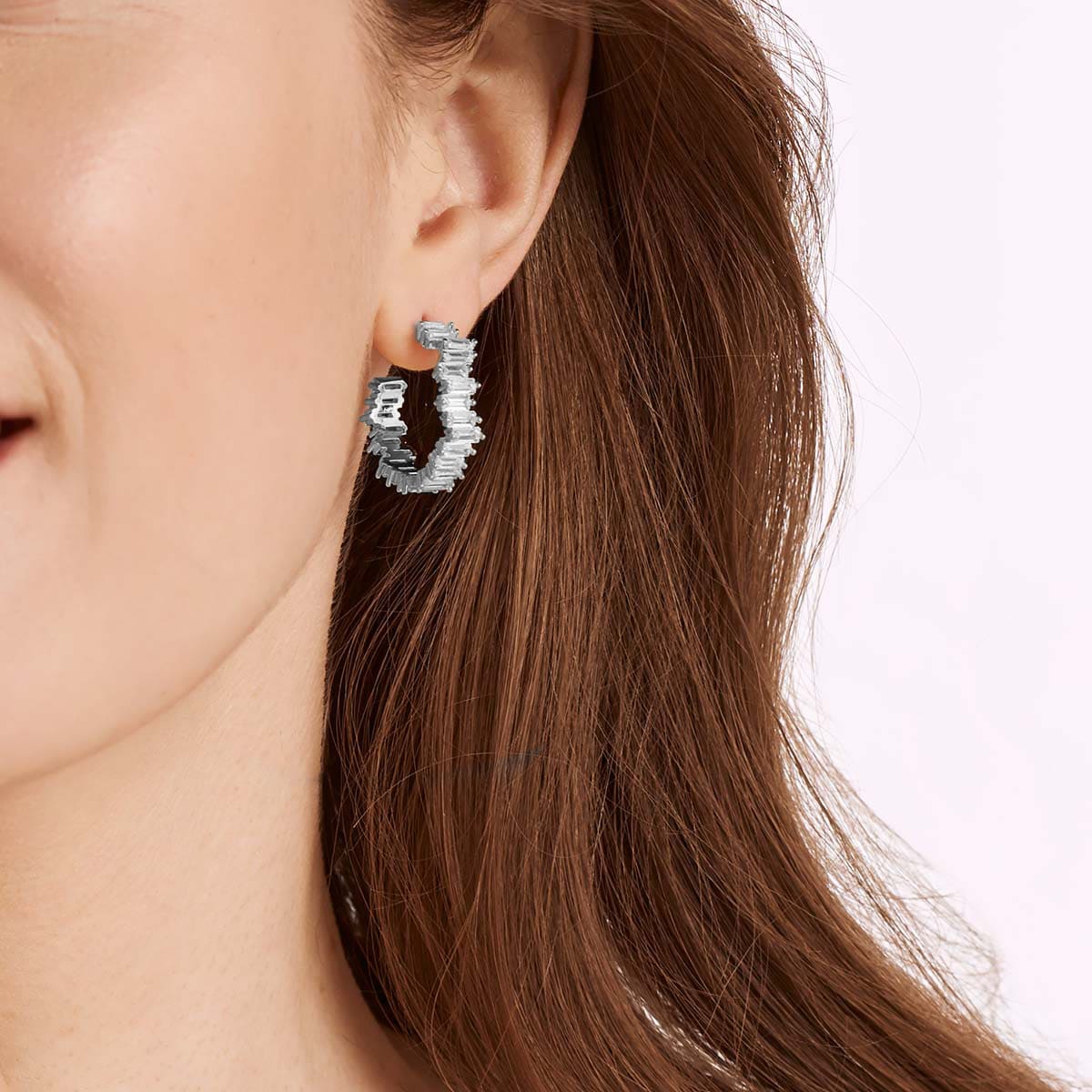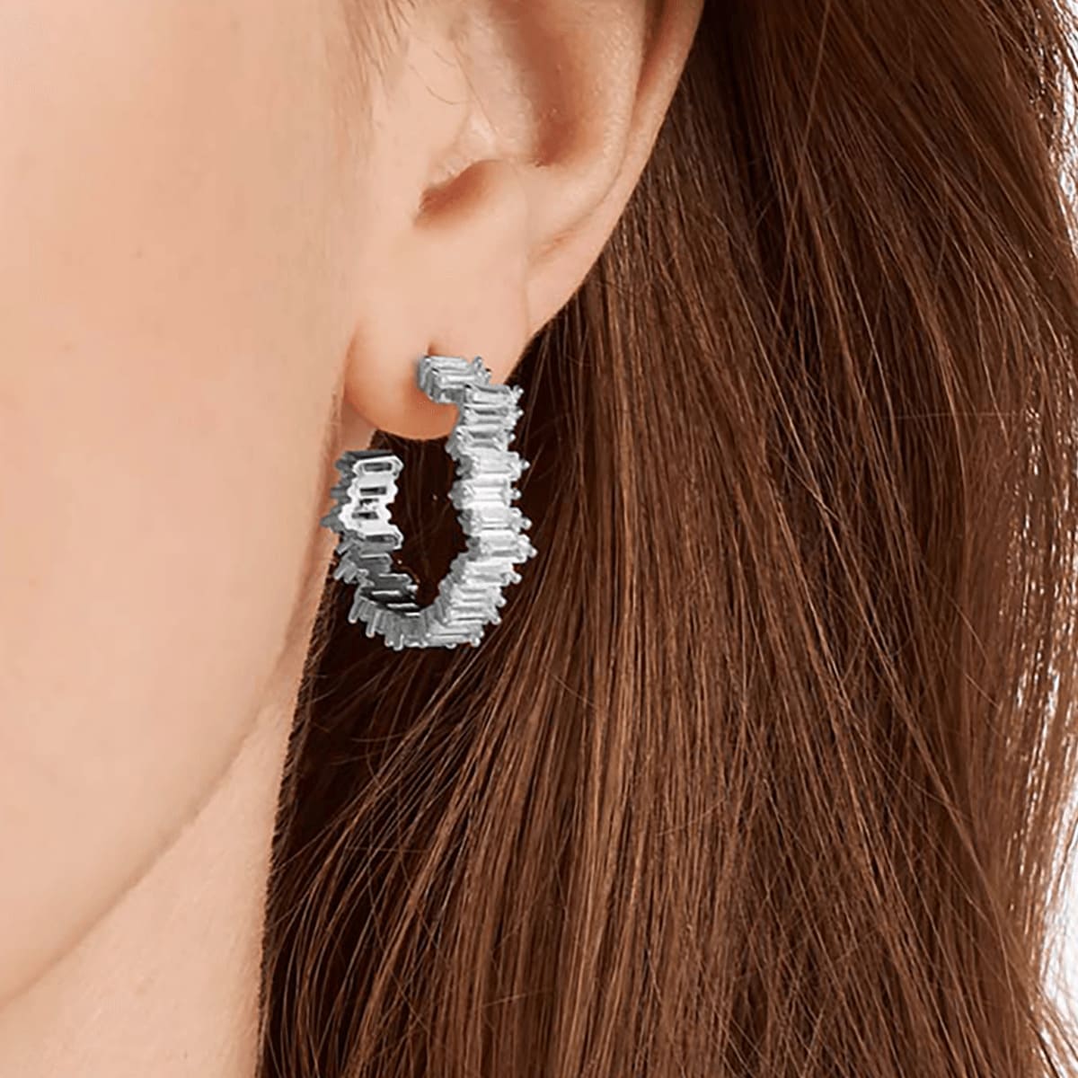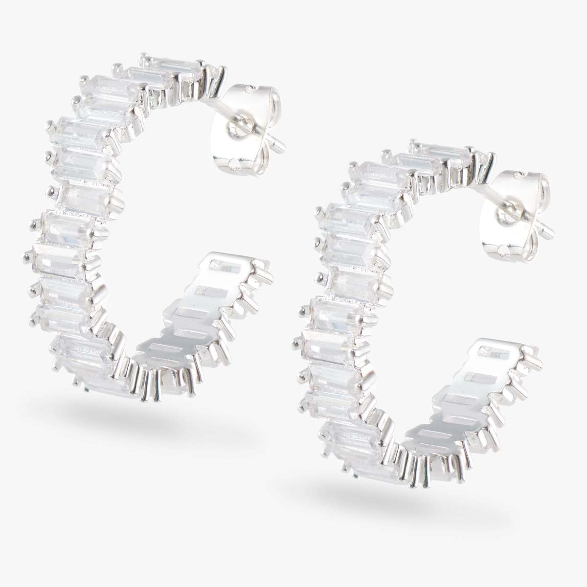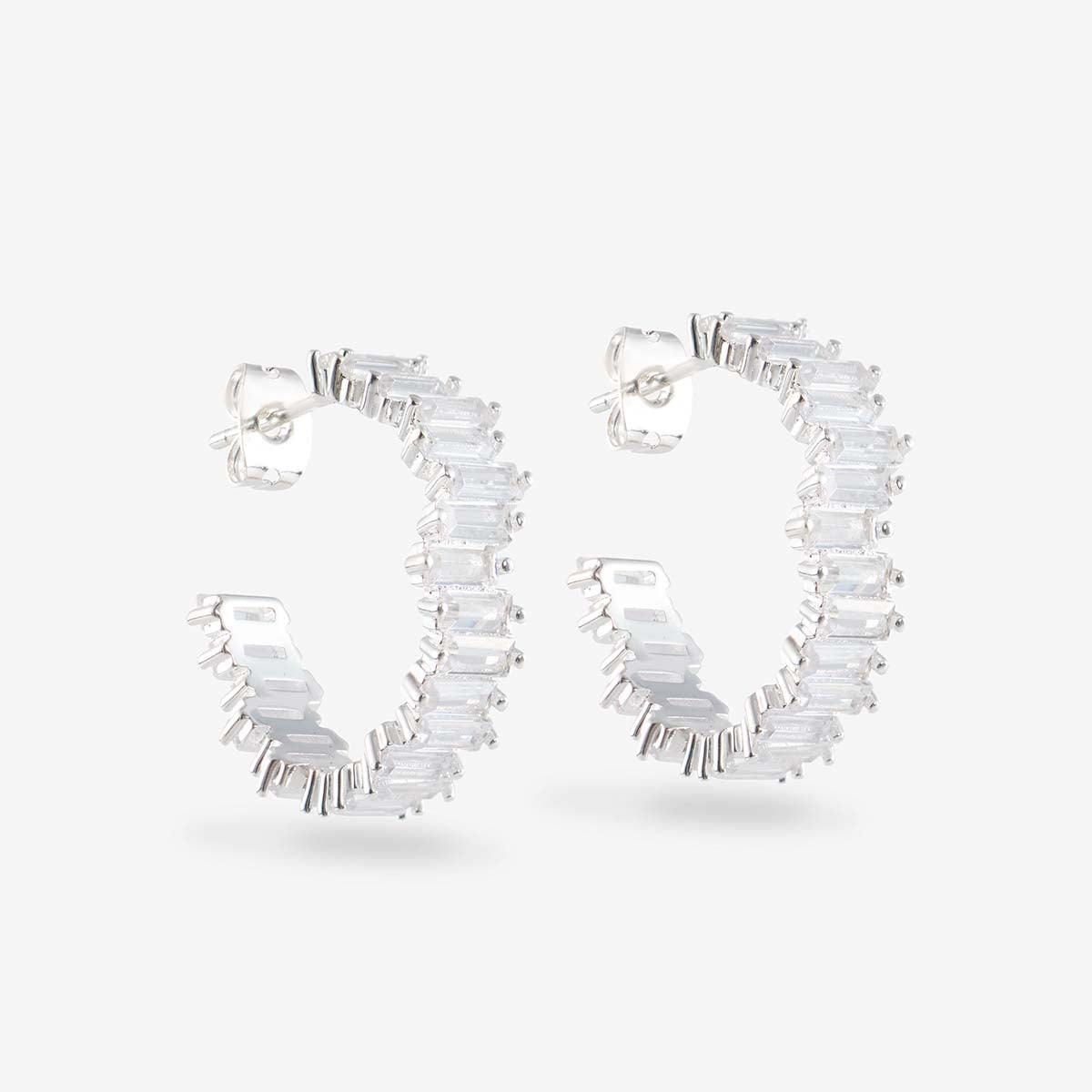 The Baguette Hoops combine zirconia stones with a baguette-cut providing you with a delicate piece. The Baguette Hoops are a classic piece where the elegance shines for itself.