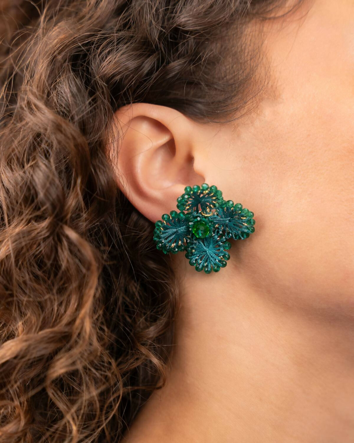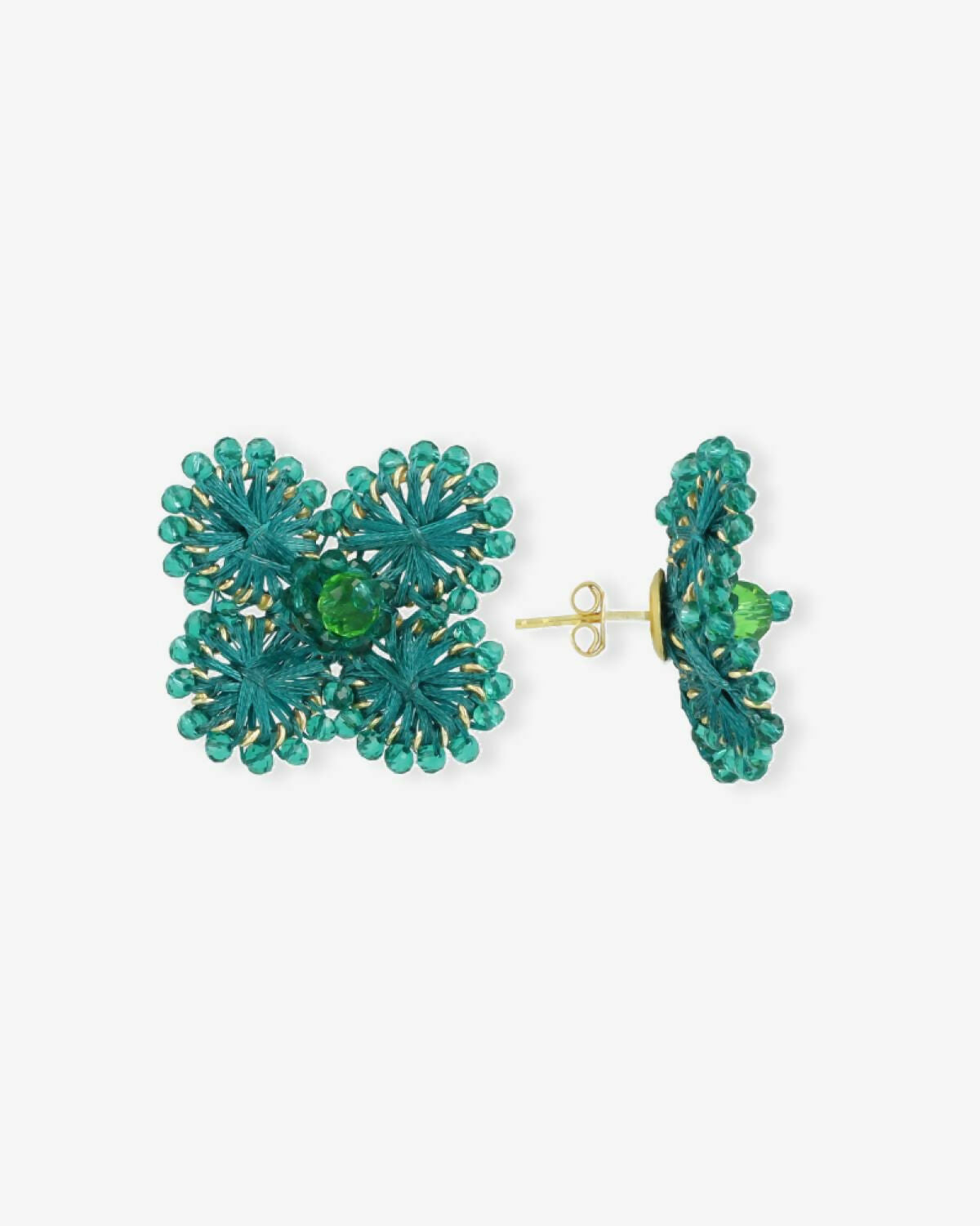 Zarte Blütenform in einem frischen, ozeanfarbenen Grün. Leicht und verspielt, zugleich edel durch die 18k-Vergoldung – ein Schmuckstück, das Natürlichkeit und Eleganz vereint.