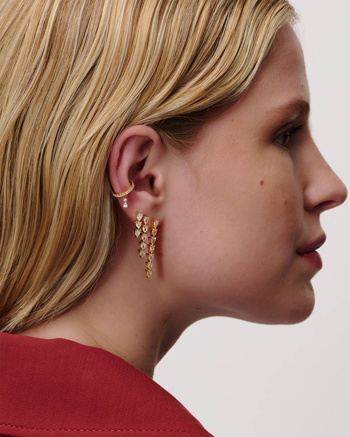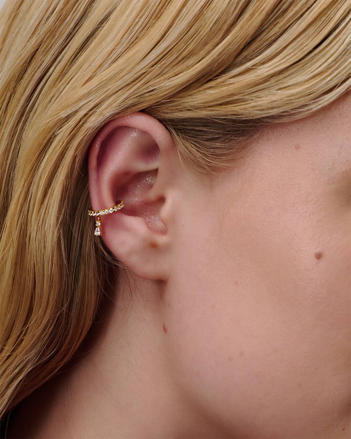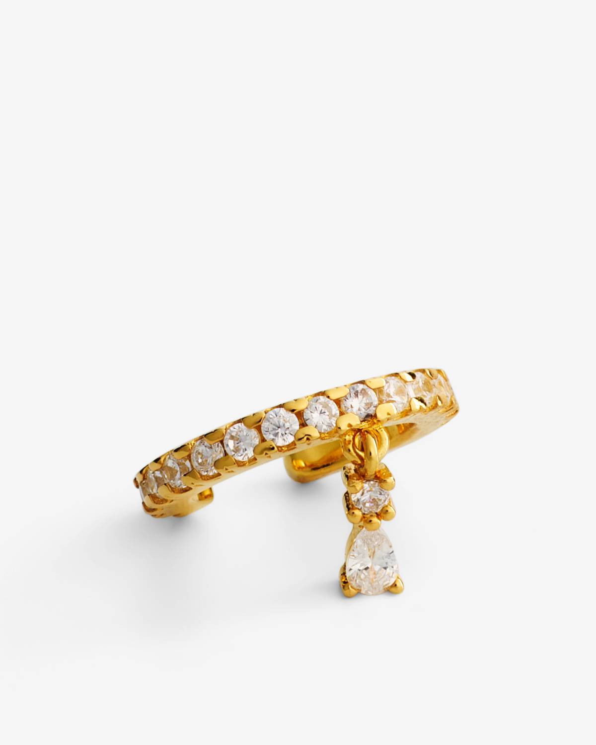 The Pear Drop Earcuff in 18ct gold plating takes your ear game to the next level. Sparkling white zirconia stones line up beautifully, catching the light from every angle. Stylish, modern & super easy to wear – your instant glow-up piece!