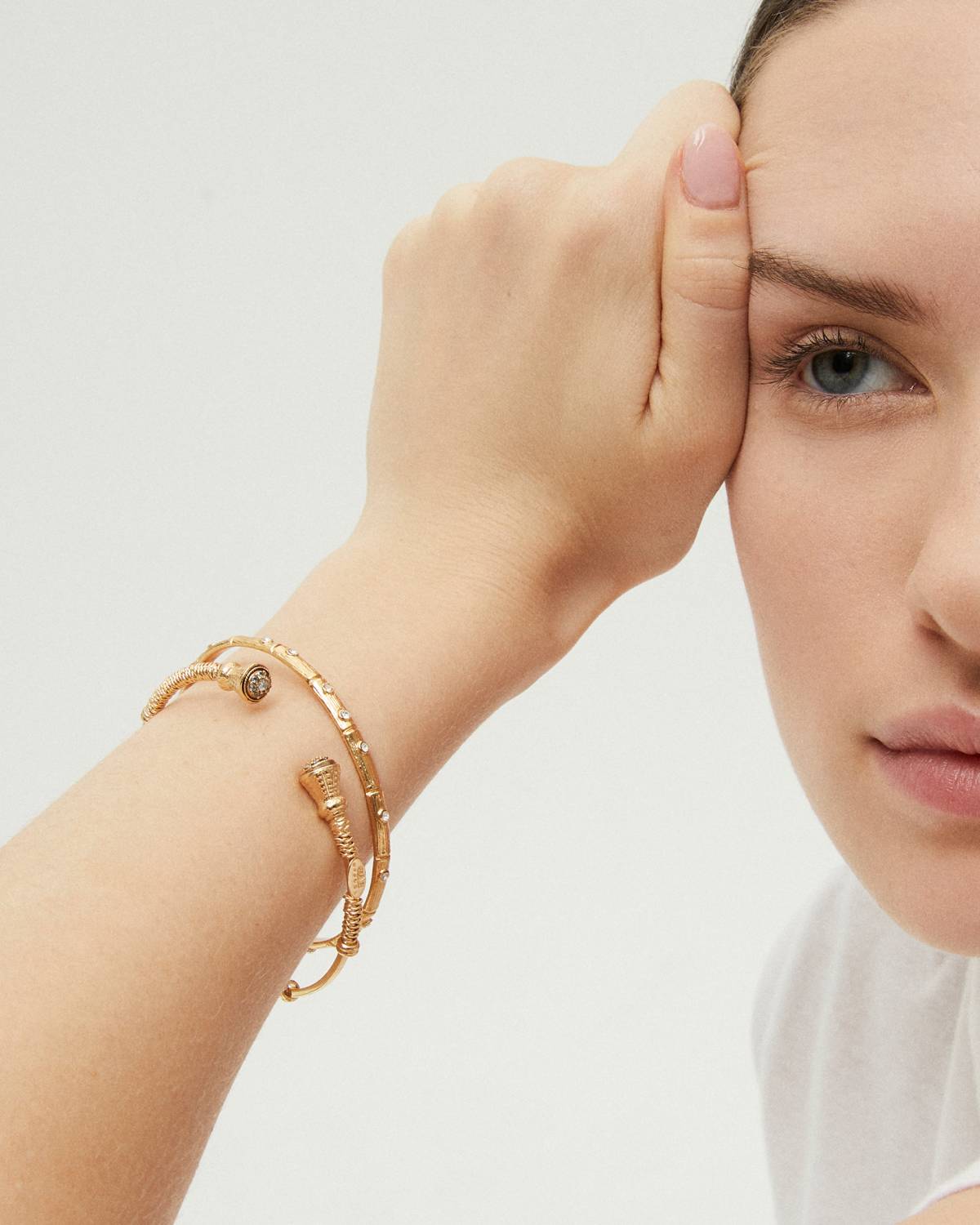 The Epique Strass Bracelet, crafted in 18ct gold-plated metal, enchants with delicate rhinestones at both ends. Its fine, textured surface captures the light beautifully – elegant, modern, and with just the right touch of drama.