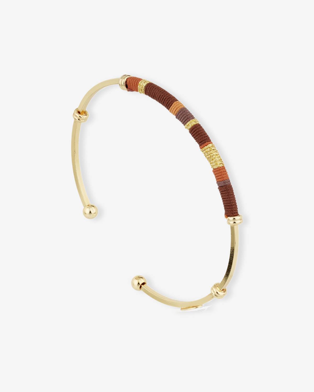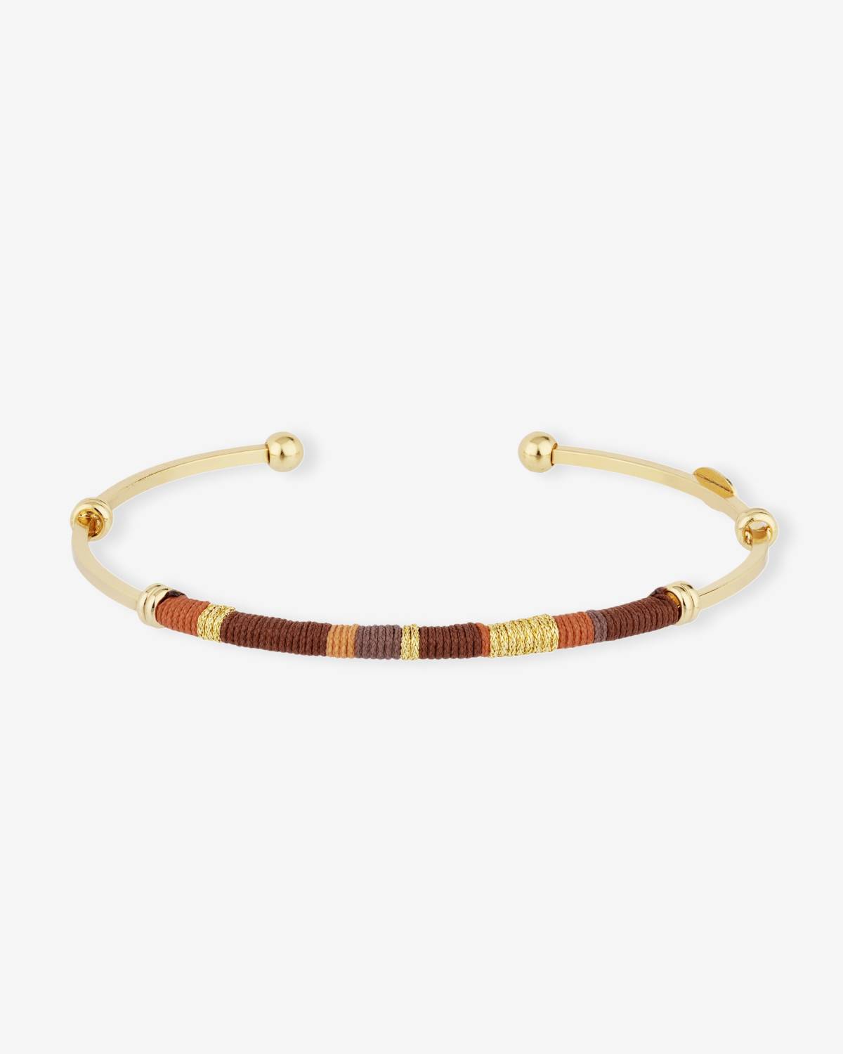 Inspired by the Maasai spirit, the Zanzibar Bracelet blends 18kt gold-plated shine with hand-wrapped threads in warm earthy tones. With its adjustable design, it’s as flexible as your style – a golden symbol of strength and effortless grace.