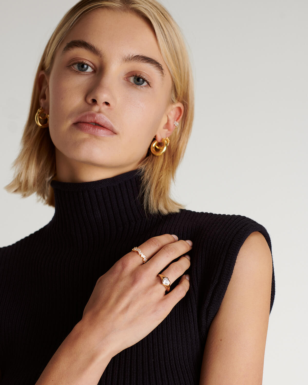 A fusion of playfulness and romance, this Pompidou ring is made of recycled sterling silver and plated with 18 carat gold. With its attention-grabbing zirconia heart, it is a perfect ring for your partner to wear with any outfit.