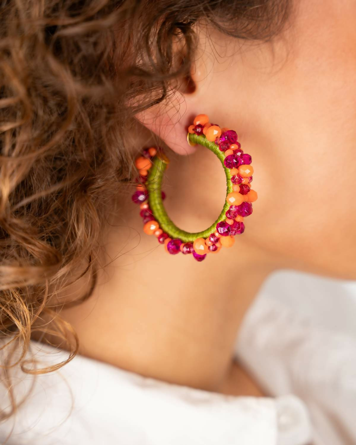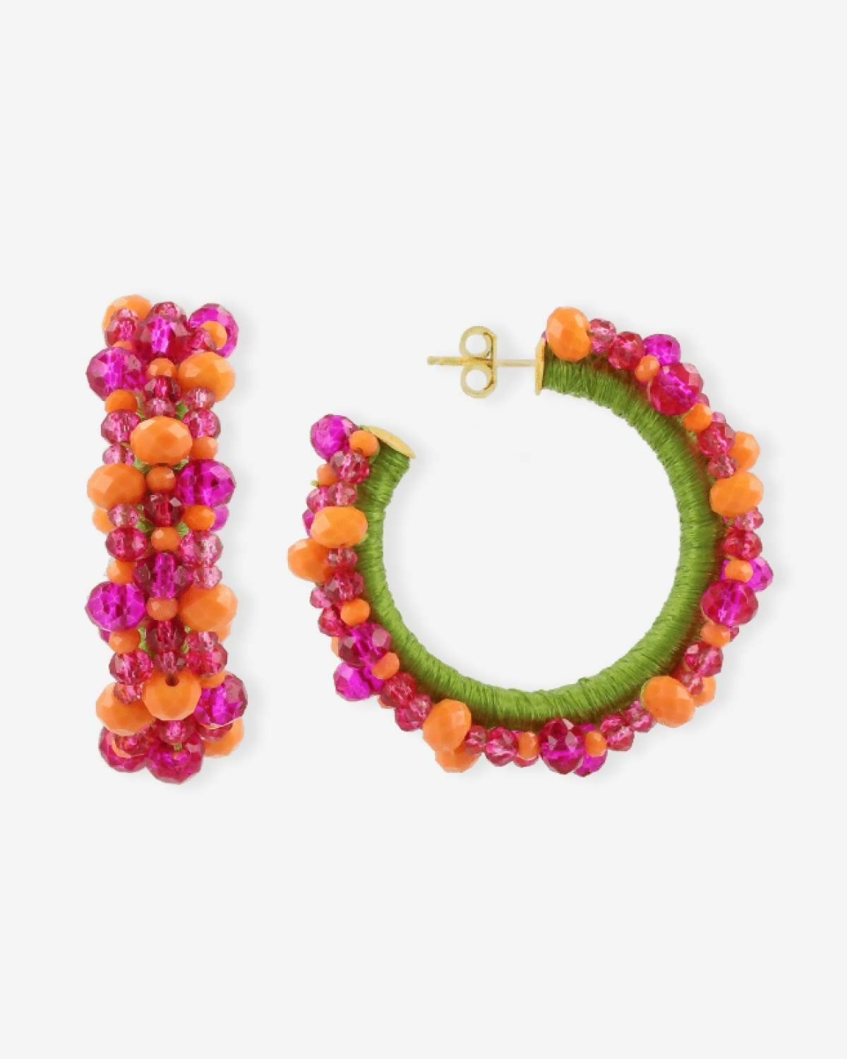 Eine der Trendkombinationen dieser Saison. Diese orangefarbenen und fuchsiafarbenen Ohrringe sind ein Must-Have. Mit ihrem geringen Gewicht und den auffälligen Farben kannst du diese Statements den ganzen Tag über tragen.