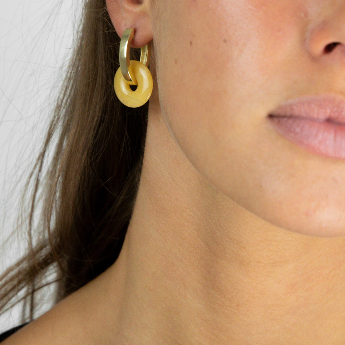 You can wear this gemstone pendant either on your existing hoops or you can choose our Big hoops or Oval hoops to go with it. This yellow/orange gemstone strengthens stability and self-confidence and helps to overcome difficult phases in life. Calcite is said to have a calming effect, for example it can protest us from nightmares. The gemstones and pearls are high-quality natural products. Every gemstone has its exclusive color expression, a quality feature. The color in the pictures can differ slightly from the color of the gemstone.