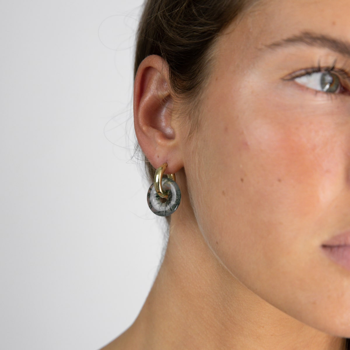 You can wear this gemstone pendant either on your existing hoops or you can choose our Big hoops or Oval hoops to go with it. This gem makes you brave, strengthens self-confidence and promotes self-awareness. For many people it is also a good luck charm. Moss agates are mostly colorless or white, interspersed with green, green-black or red-brown delicate structures that are reminiscent of tiny, branched trees. The gemstones and pearls are high-quality natural products. Every gemstone has its exclusive color expression, a quality feature. The color in the pictures can differ slightly from the color of the gemstone.