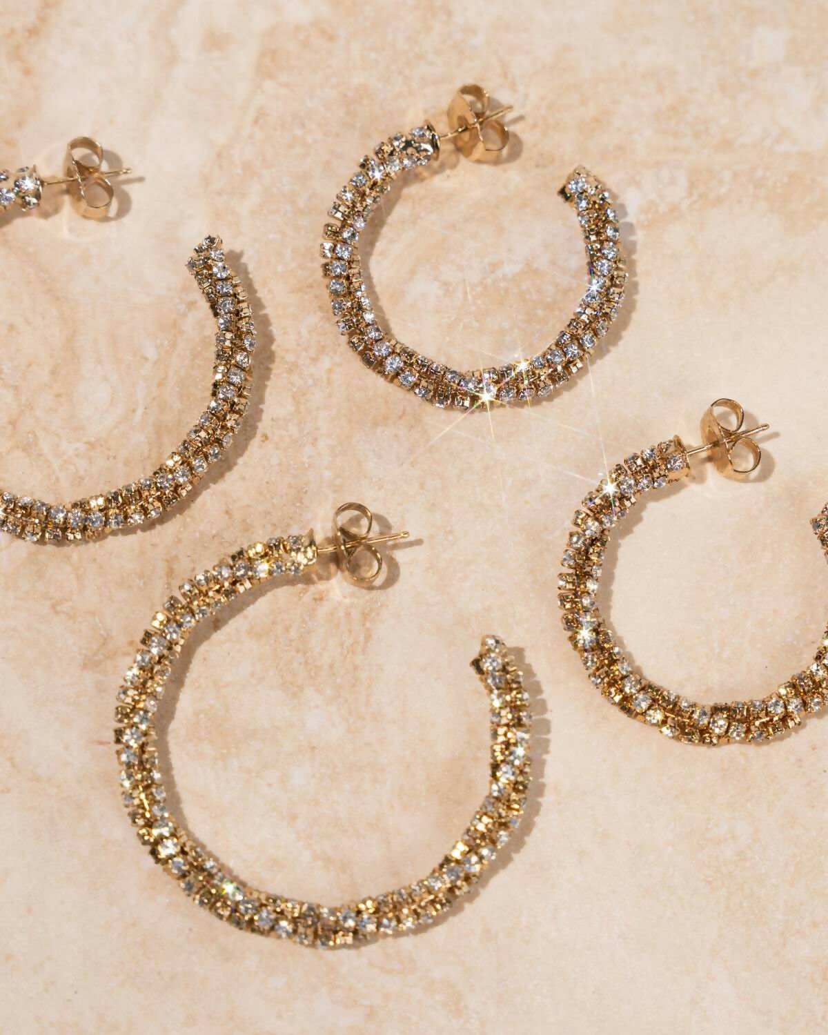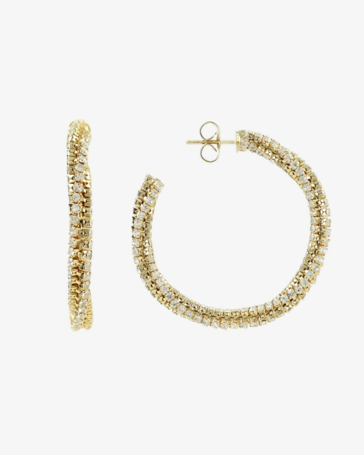 Gold/Kristall Stevie Gedrehte Tennis Ohrringe L - Creolen - 18kt vergoldet