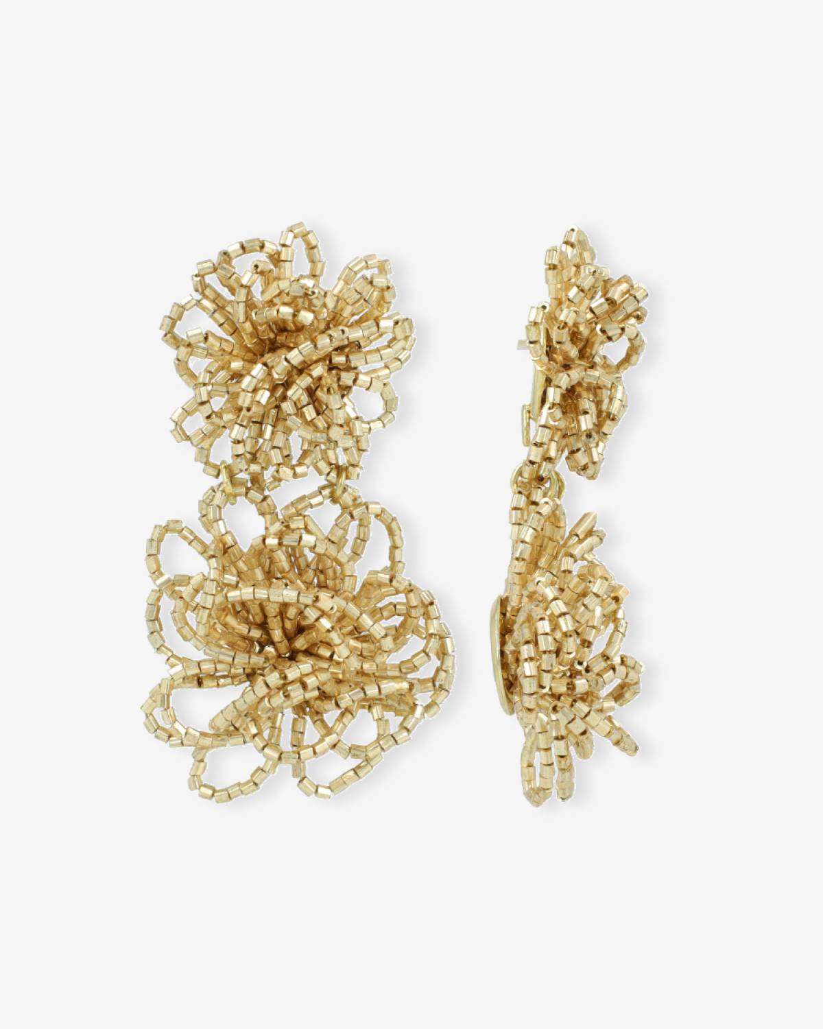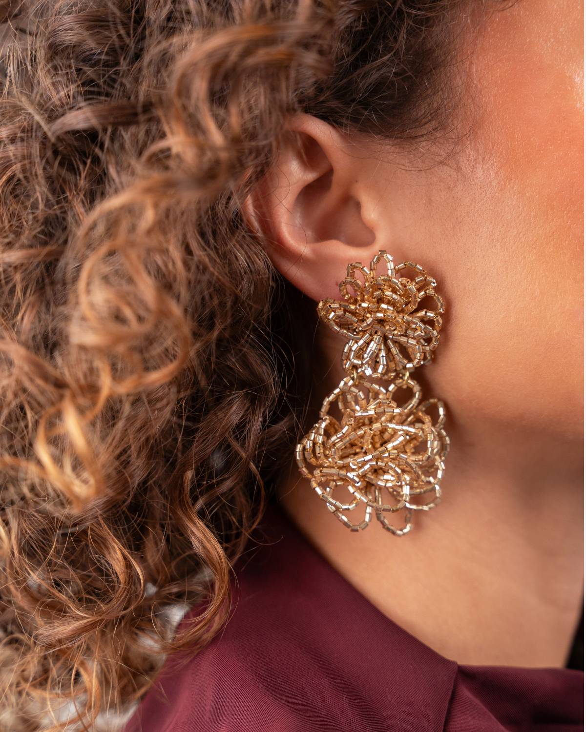 The Maerle Gold earrings by LOTT.gioielli celebrate bold opulence: tiny golden beads twist into dynamic loops that sway with every step. The 18ct gold plating enhances their luxurious shimmer and adds a modern, playful edge – statement-making and irresistibly fun!