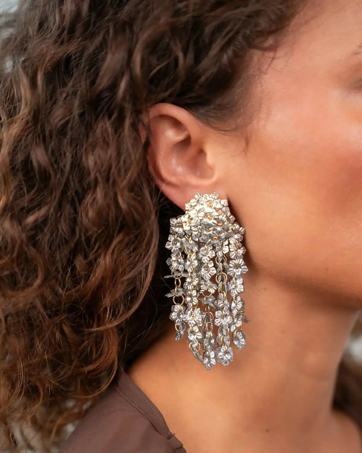 Sequin Detailled Flower Rain Silver - Ohrringe - 18k vergoldet