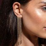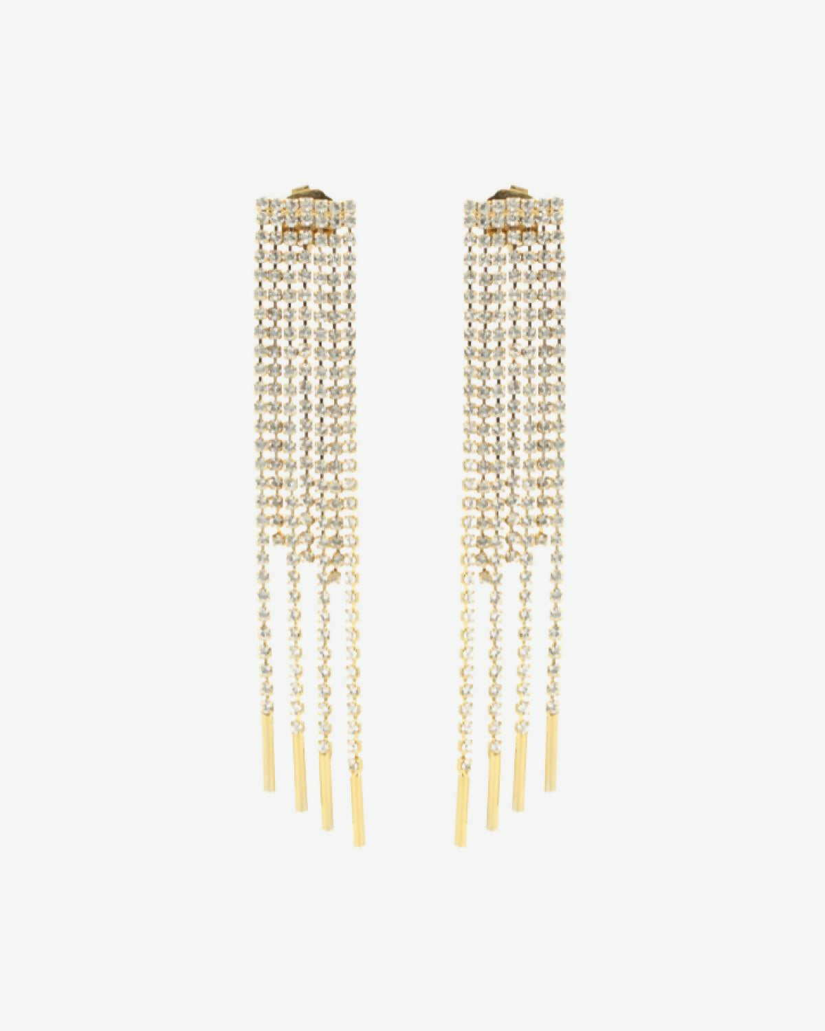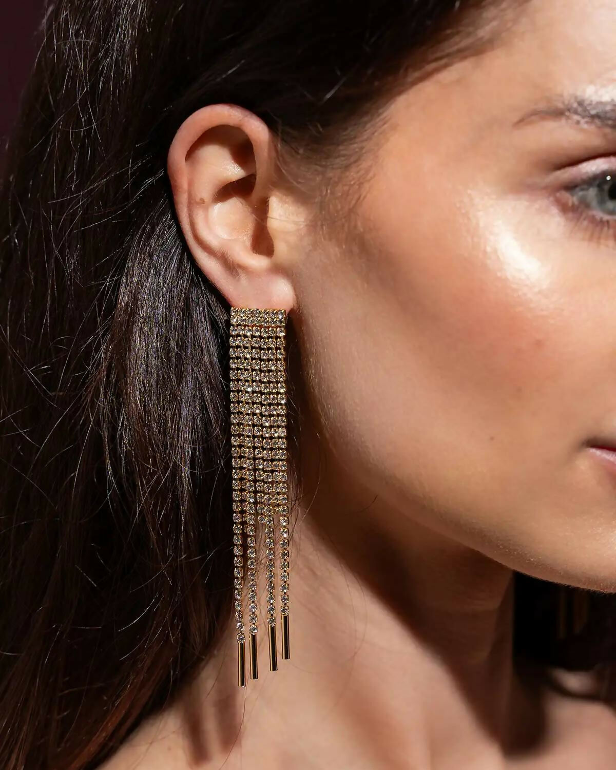 Die Mies Wasserfall-Ohrringe sind ein echter Hingucker. Diese kristallfarbenen Strass-Ohrringe sind nicht weniger als 10 Zentimeter lang und ein echter Hingucker!