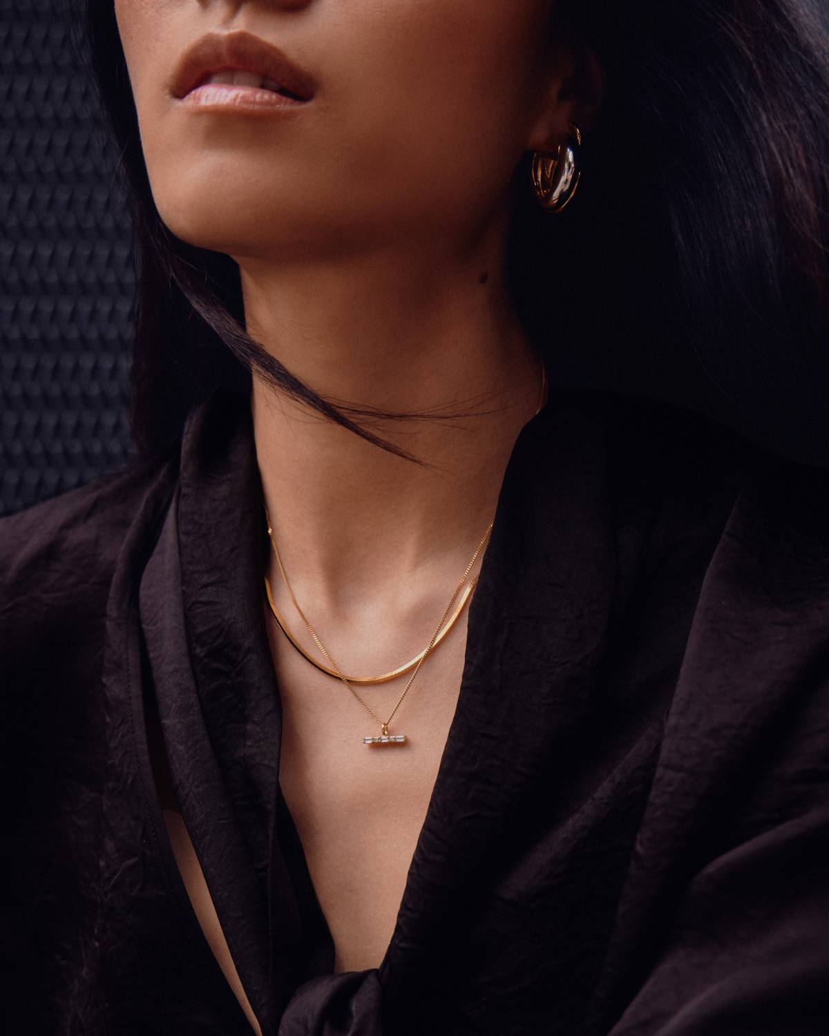 The Lucy Williams T-Bar Stone Necklace is a true it-piece! The iconic T-bar pendant sparkles with every ray of light thanks to delicate stones. Finished in radiant 18kt gold plating, it brings glam & glow to every outfit – a playful eye-catcher that takes you from coffee dates to parties.