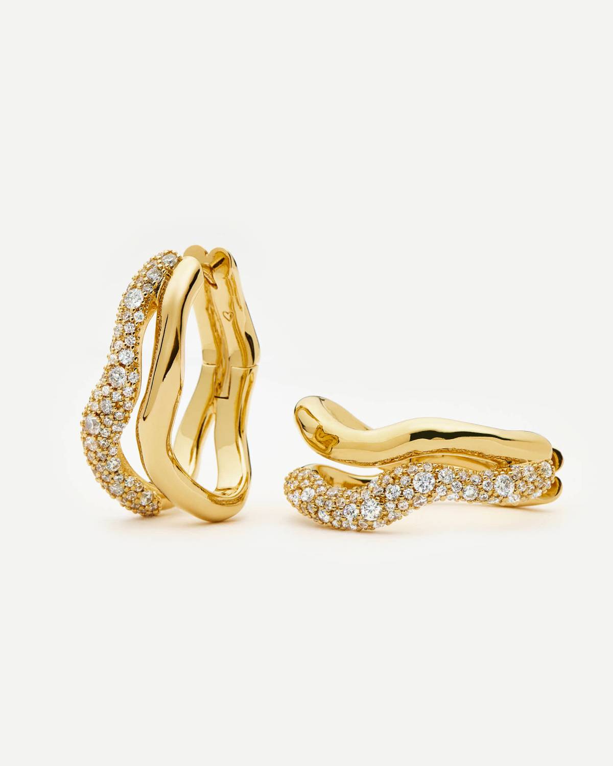 Molten Snow Double Medium – Hoop Earrings – 18ct Gold-Plated