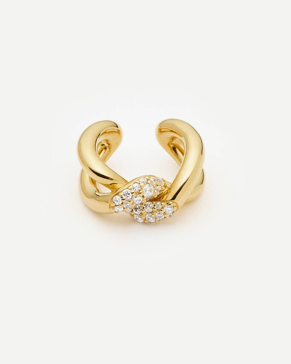 With its clean, open shape and a dazzling stone accent, the Molten Snow Earcuff is a stylish must-have. The 18kt gold plating adds warmth and shine, making it a versatile piece that works beautifully solo or in a stack.