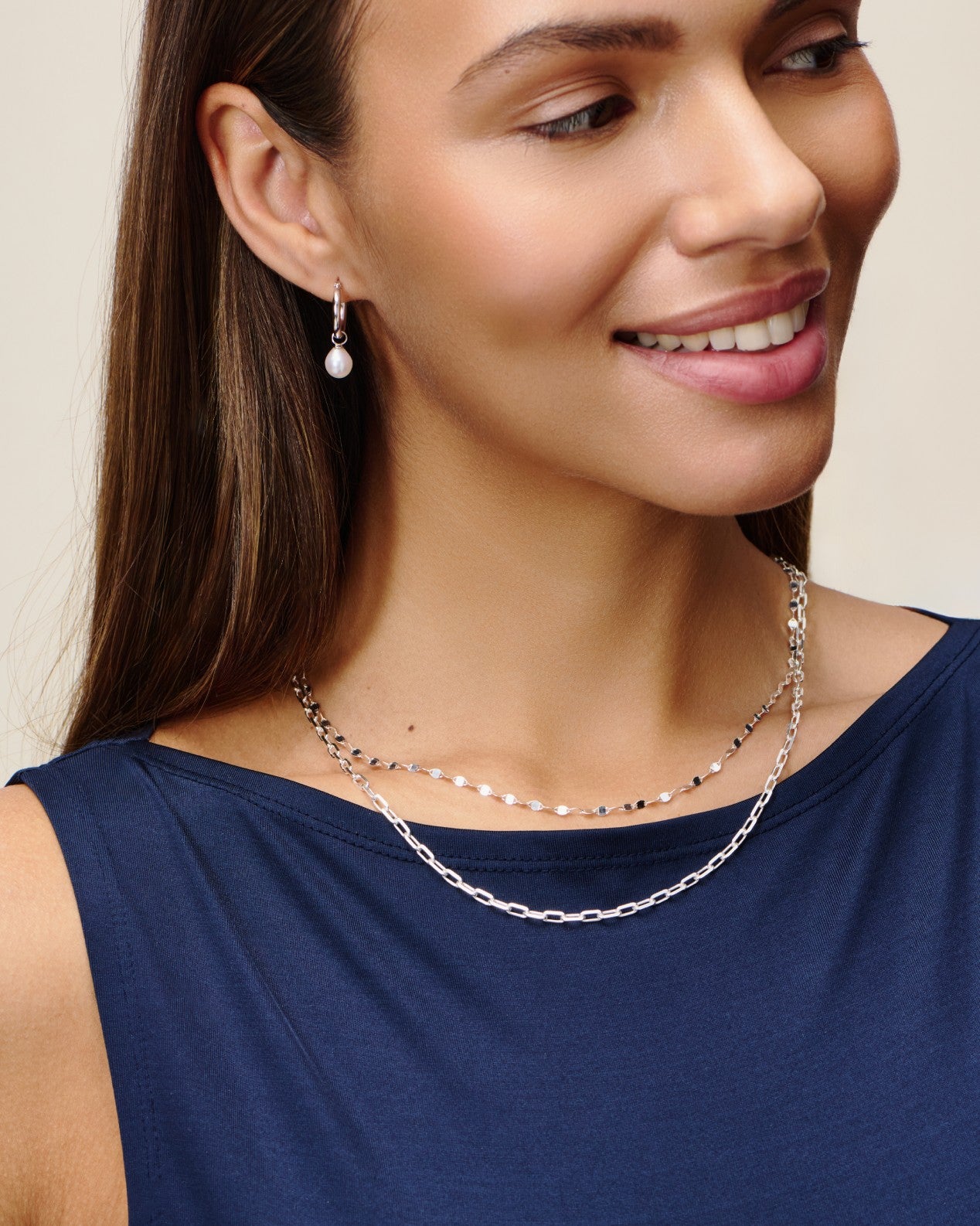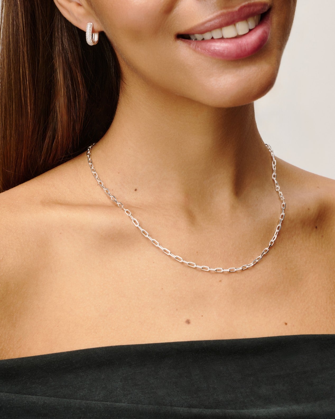 The Amélie necklace from Pompidou is a must-have for any jewelry collection. This fine sterling silver link chain is not only absolutely on trend, but offers a classy, timeless accessory. Its luminous shimmer perfectly completes any outfit and can be personalized with your favourite pendants.