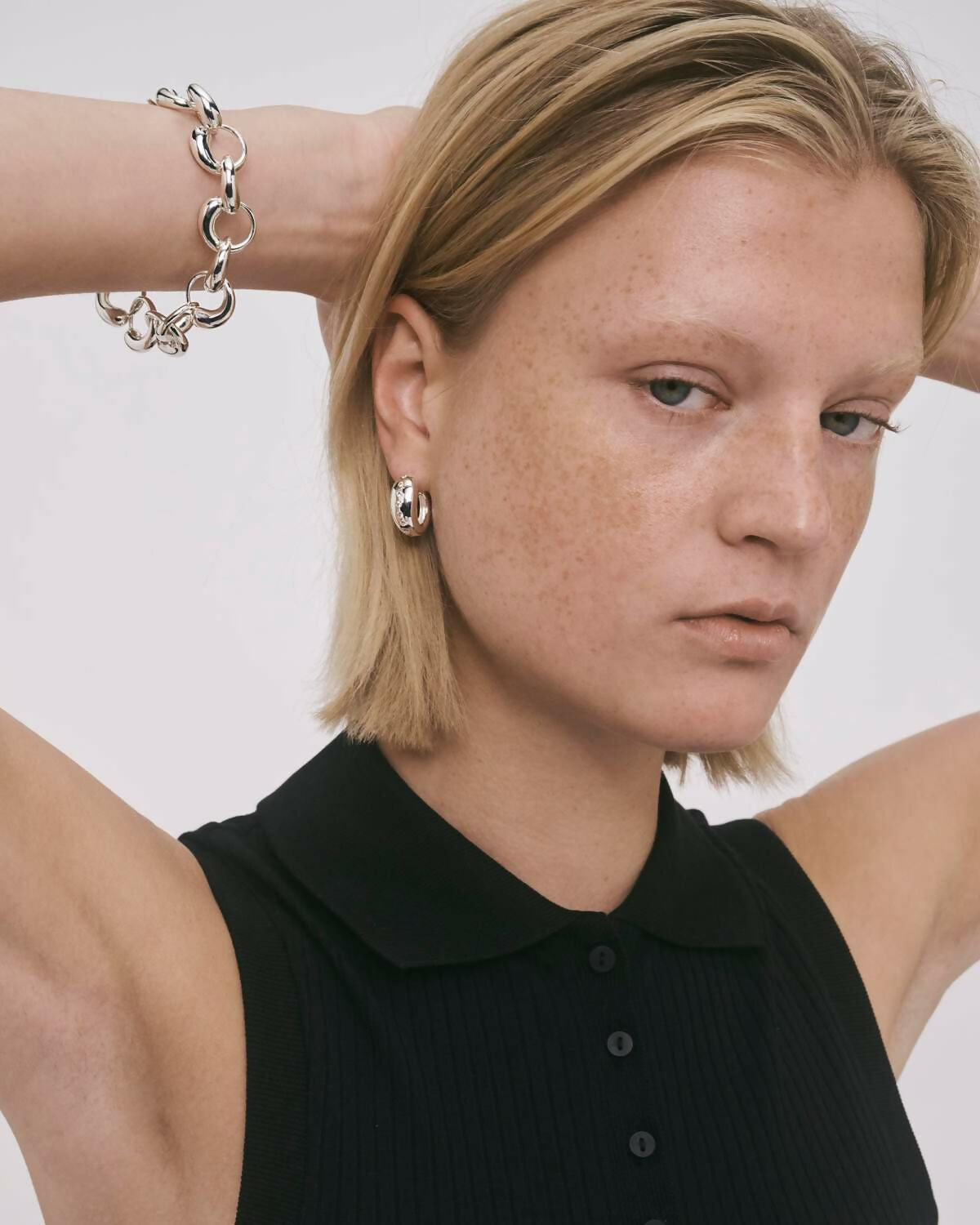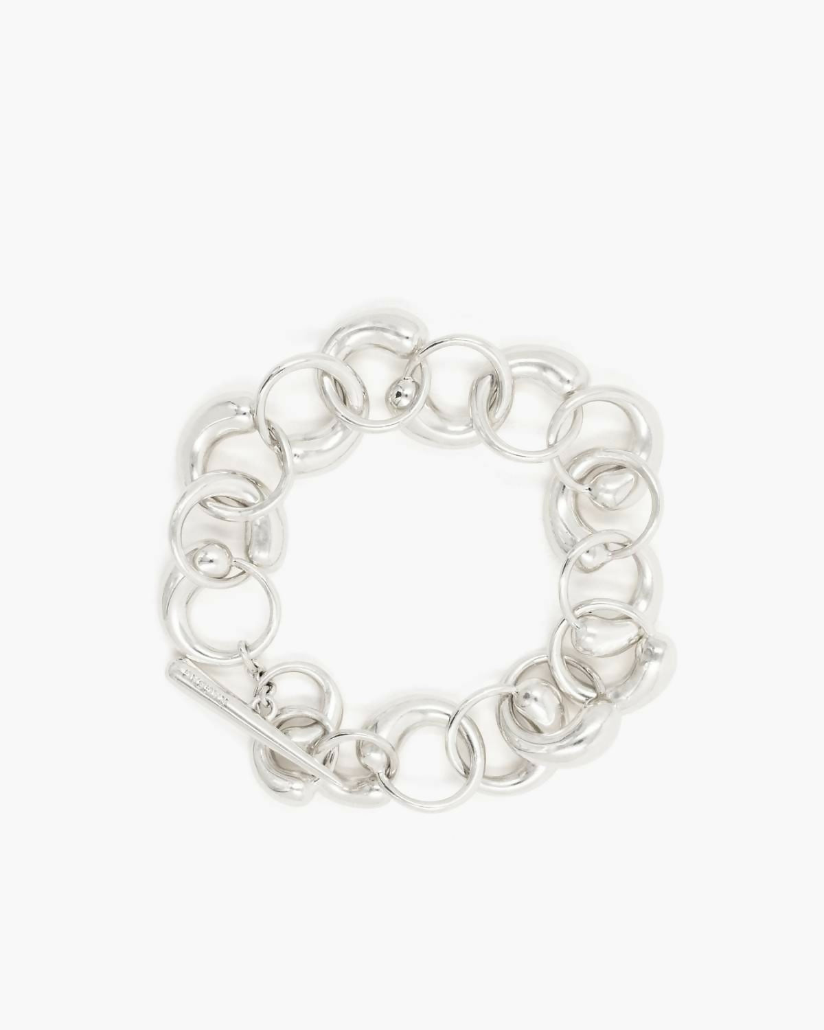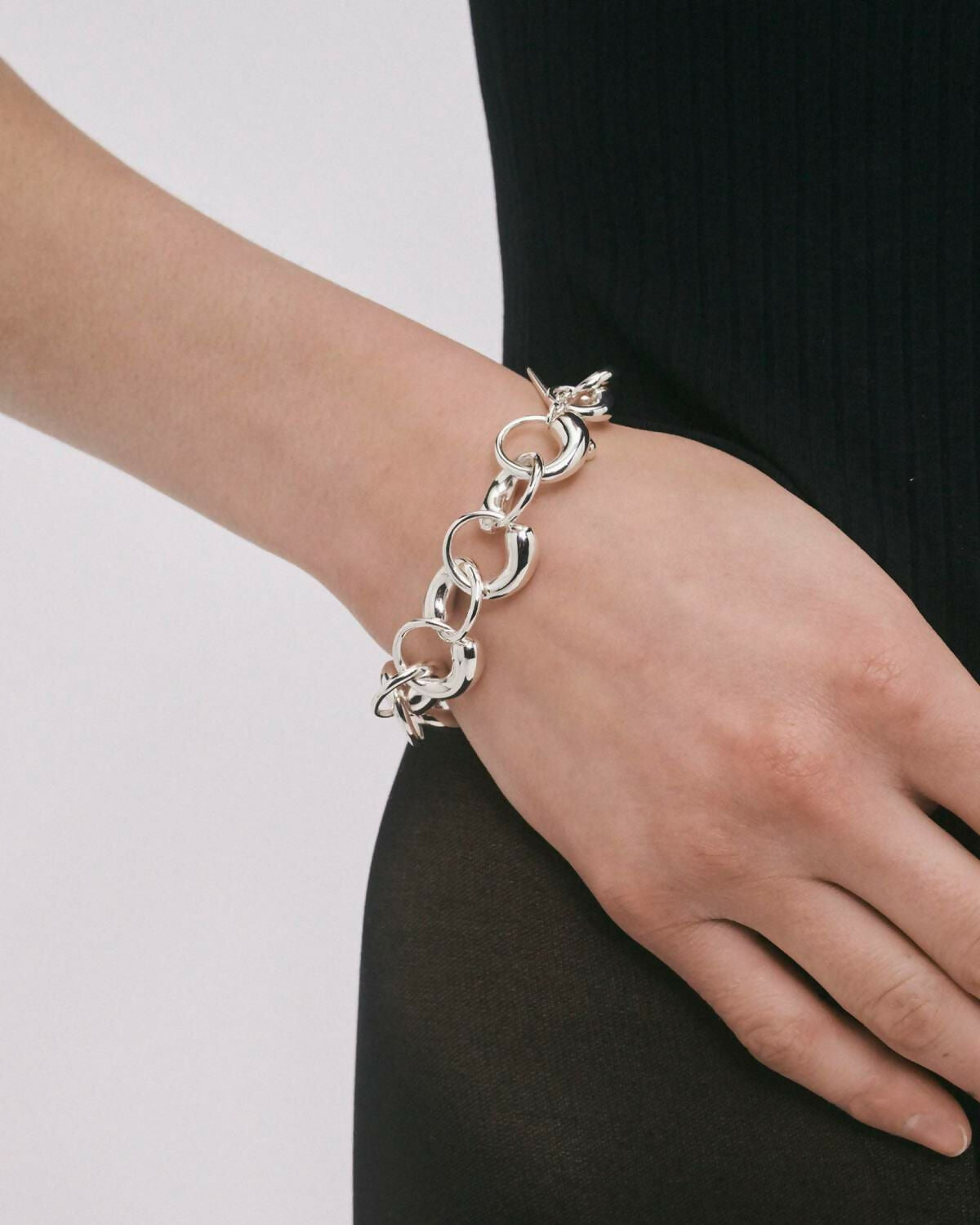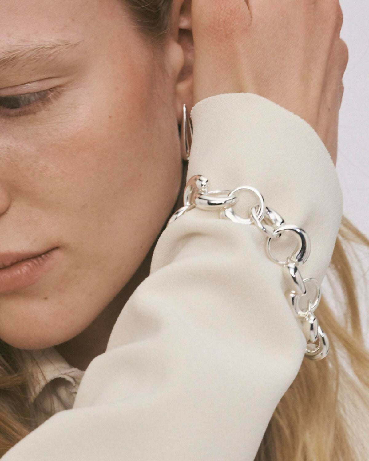 The Oculus bracelet is made with the signature Oculus links, creating a dominant piece that draws connotations to the bold modernistic Scandinavian heirlooms.