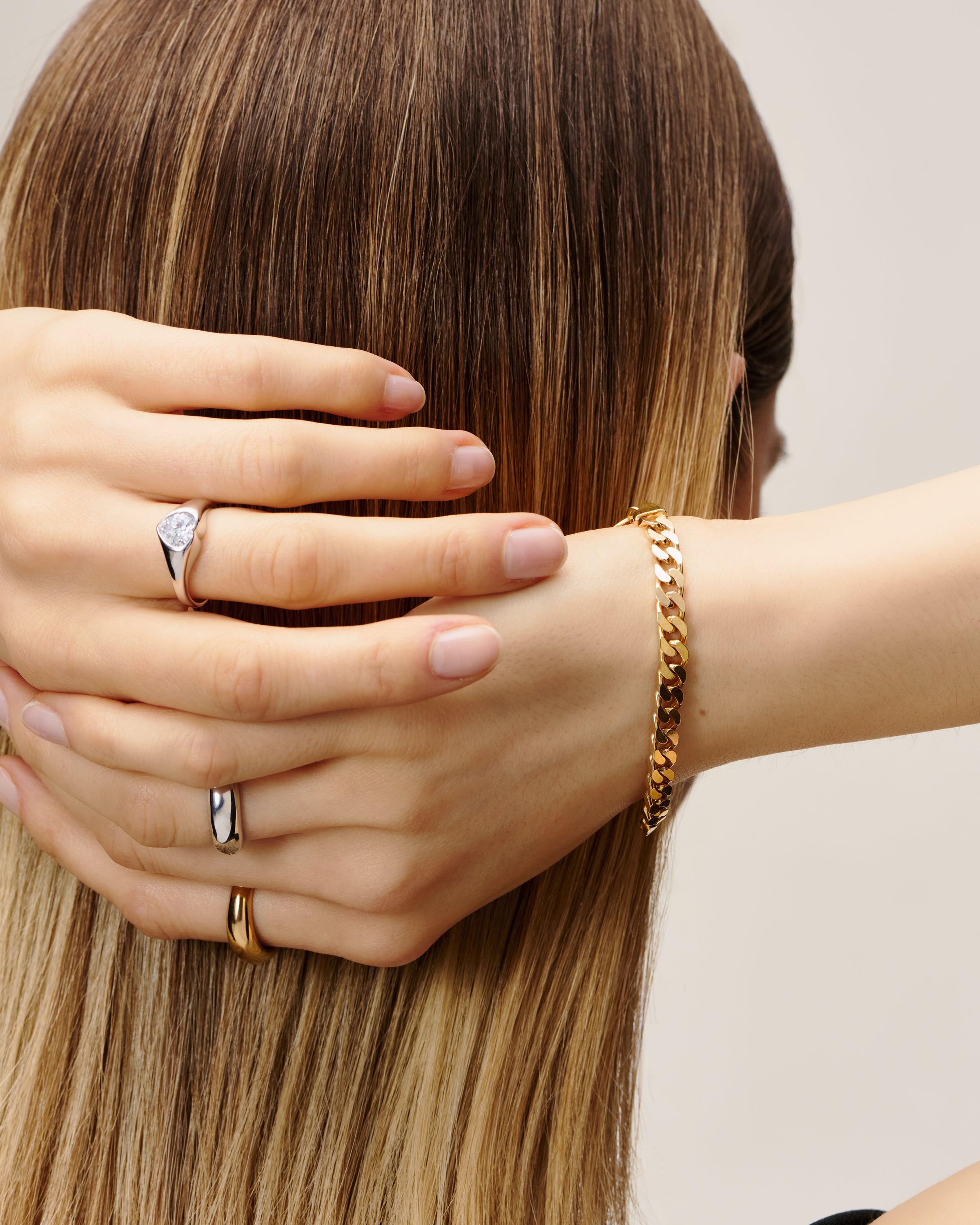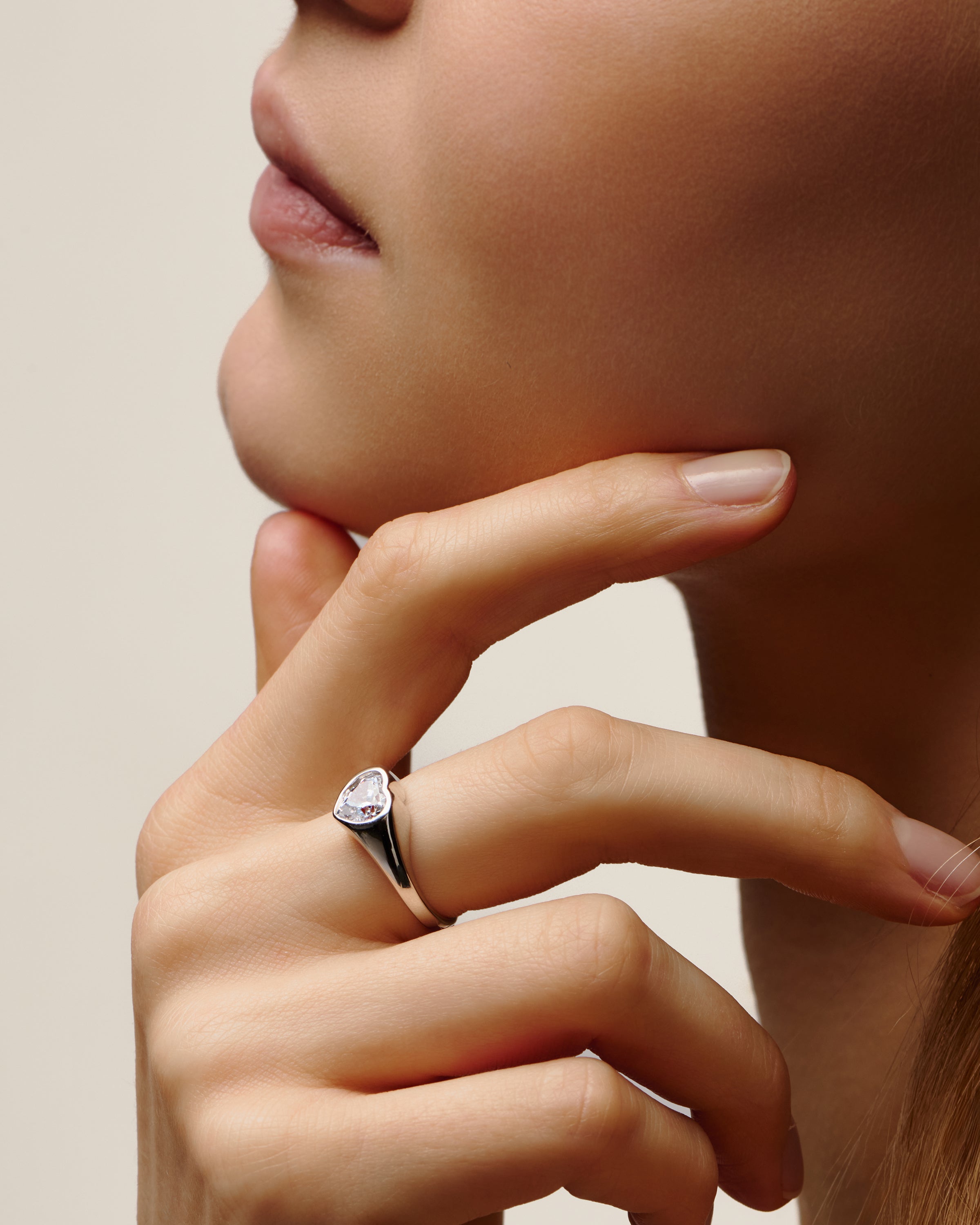 With this eye-catching ring, Pompidou knows how to tug at your heartstrings. The ring is made of recycled sterling silver and is rhodium plated. A heart-shaped zirconia is the centrepiece here, making it a perfect gift for someone special. Great for all occasions, whether it’s a day in the office or a night out.