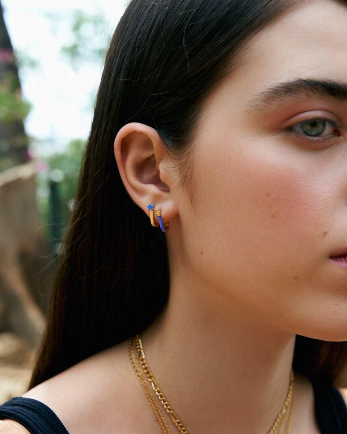 Stars combined brought us classical pieces for the day! Glossy blue enamels combined with perfect handcrafted 18k gold plated is everything. Have fun with these baby studs.