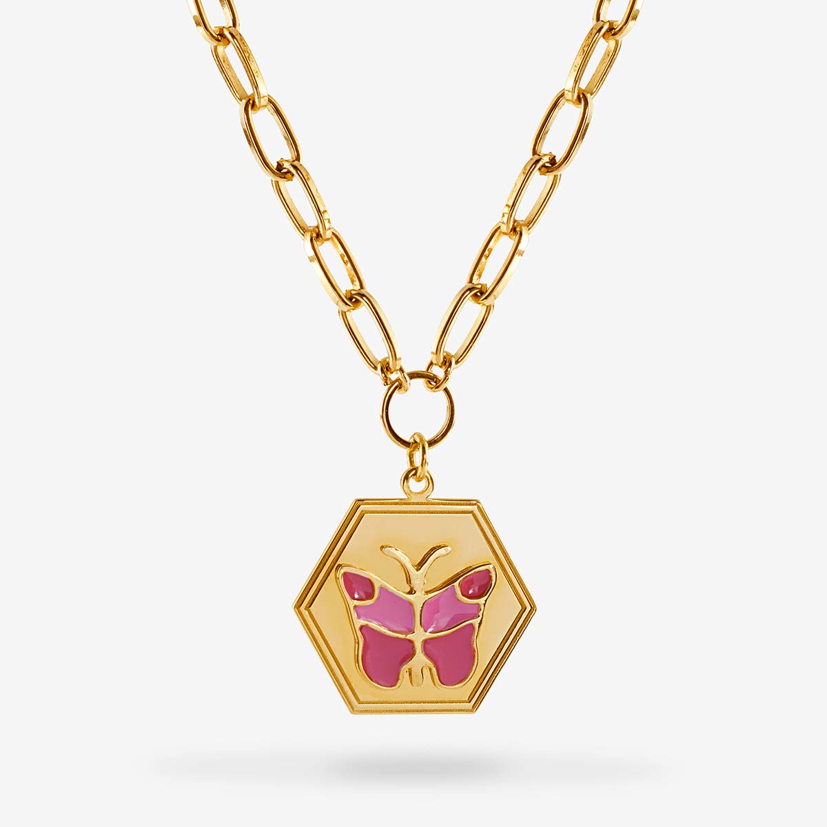 Fire Butterfly Pink - Necklace - 18kt Gold-Plated