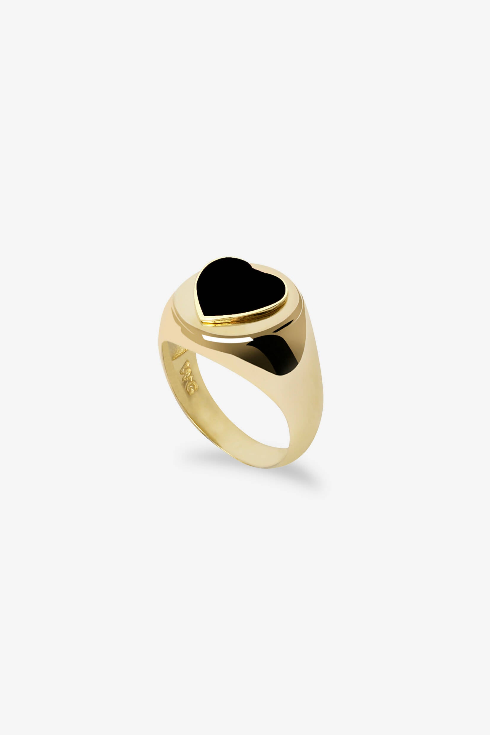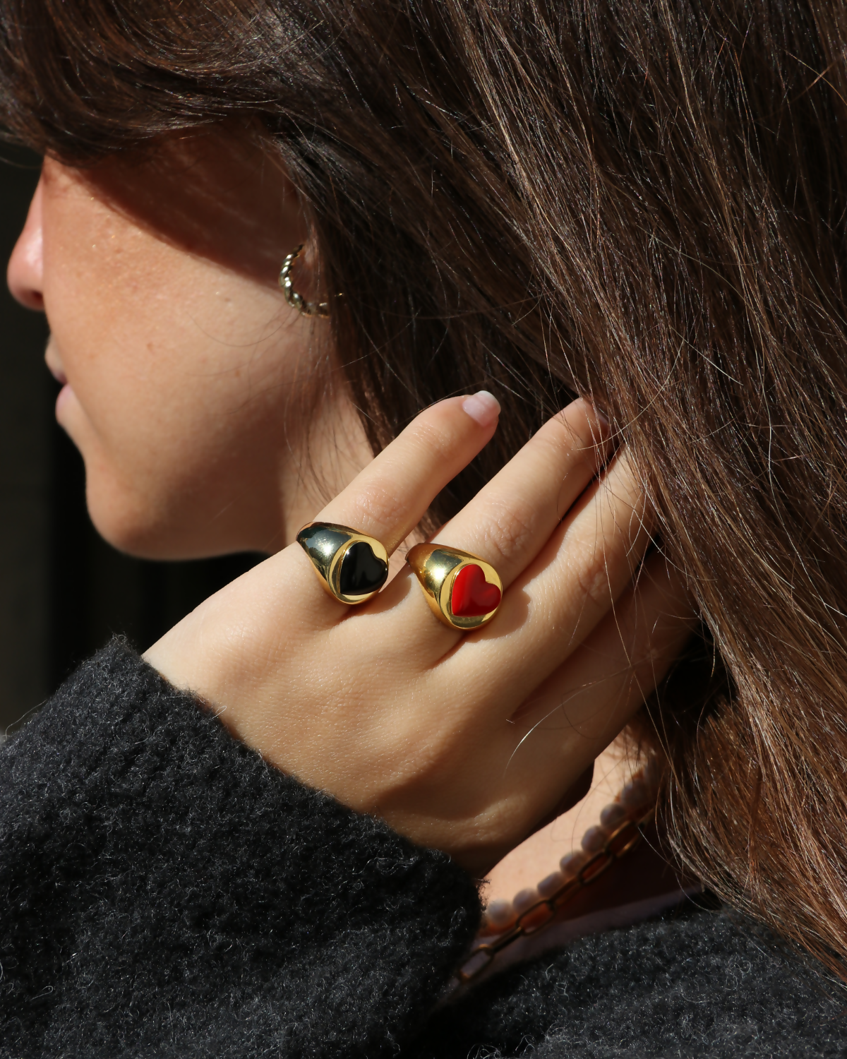 Gold Black Heart Ring - Ring - 18k vergoldet