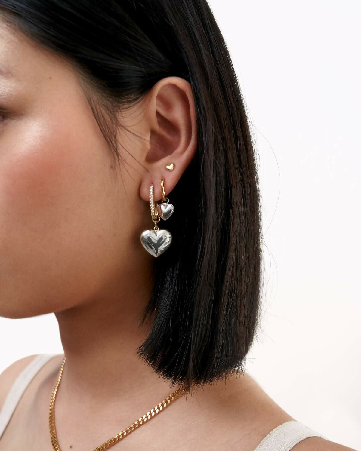 Queen of Hearts Oval Hoop - Single Ohrhänger - Versilbert