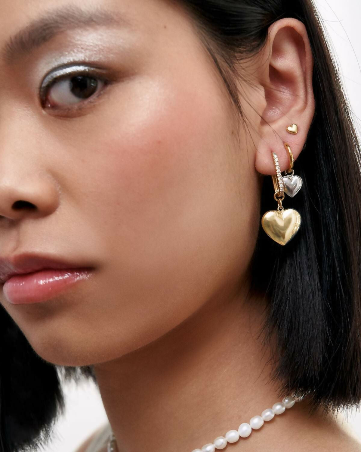 Queen of Hearts Oval Hoop - Single Ohrhänger - 18kt vergoldet