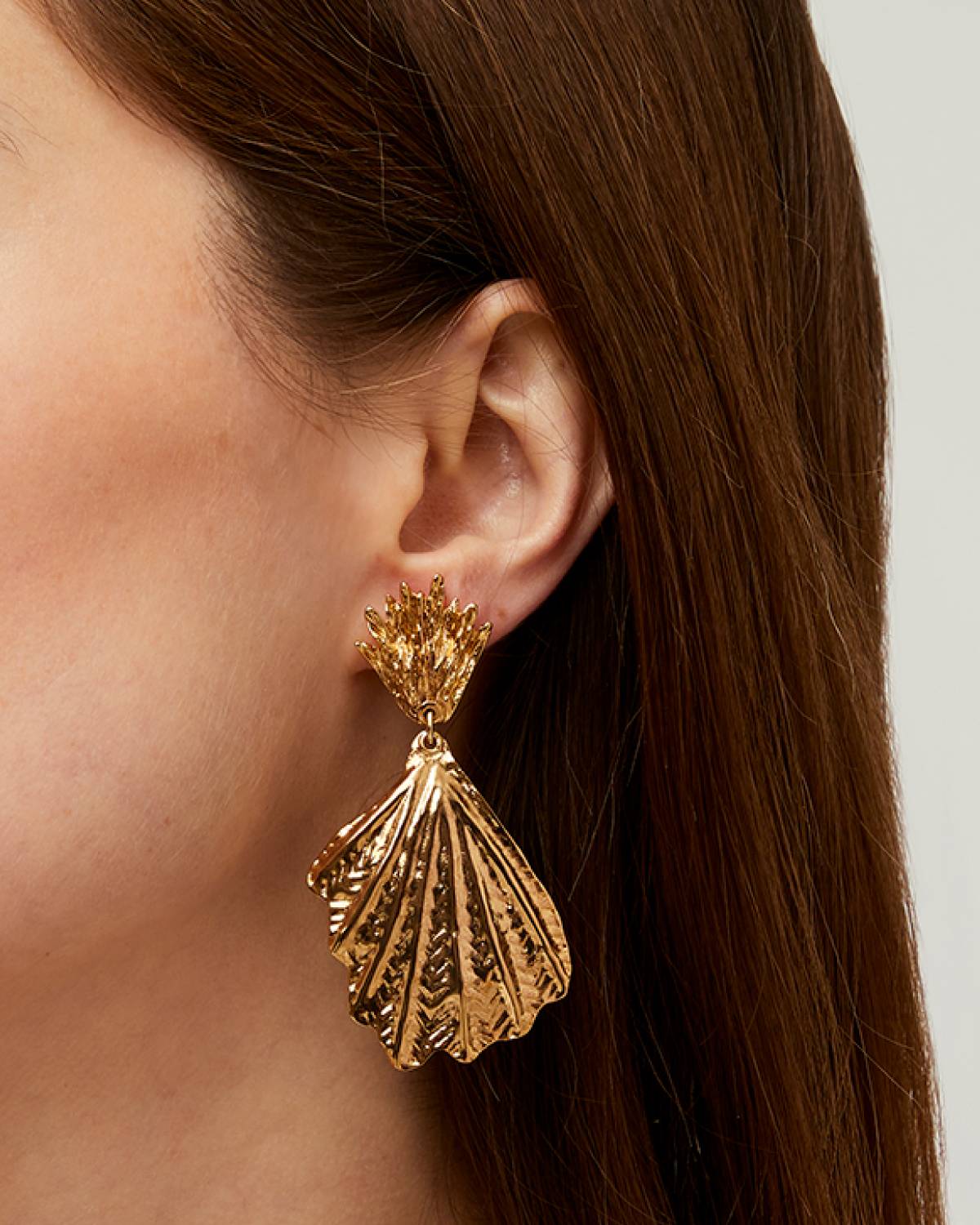 Sun meets style! The 24ct gold-plated shell earrings are like a walk on the beach in gold - textured, powerful and full of lightness. Their shell shape brings the vacation feeling directly into your everyday look. Perfect for anyone who makes summer a lifestyle.