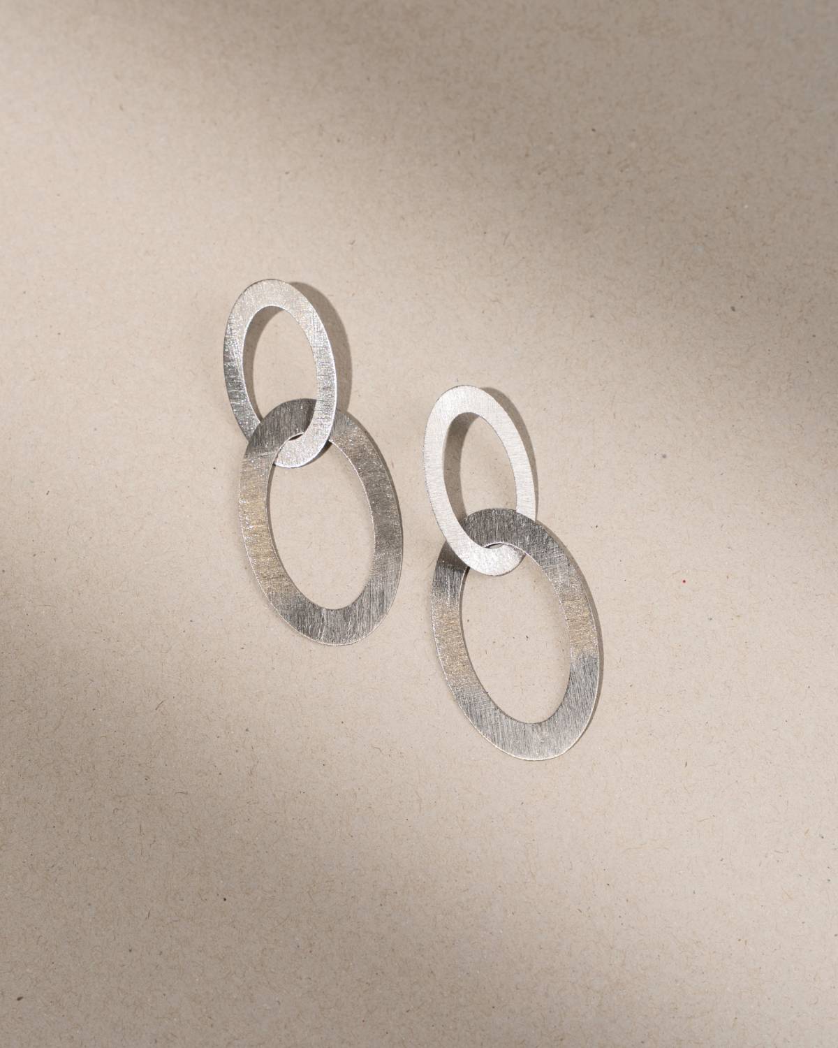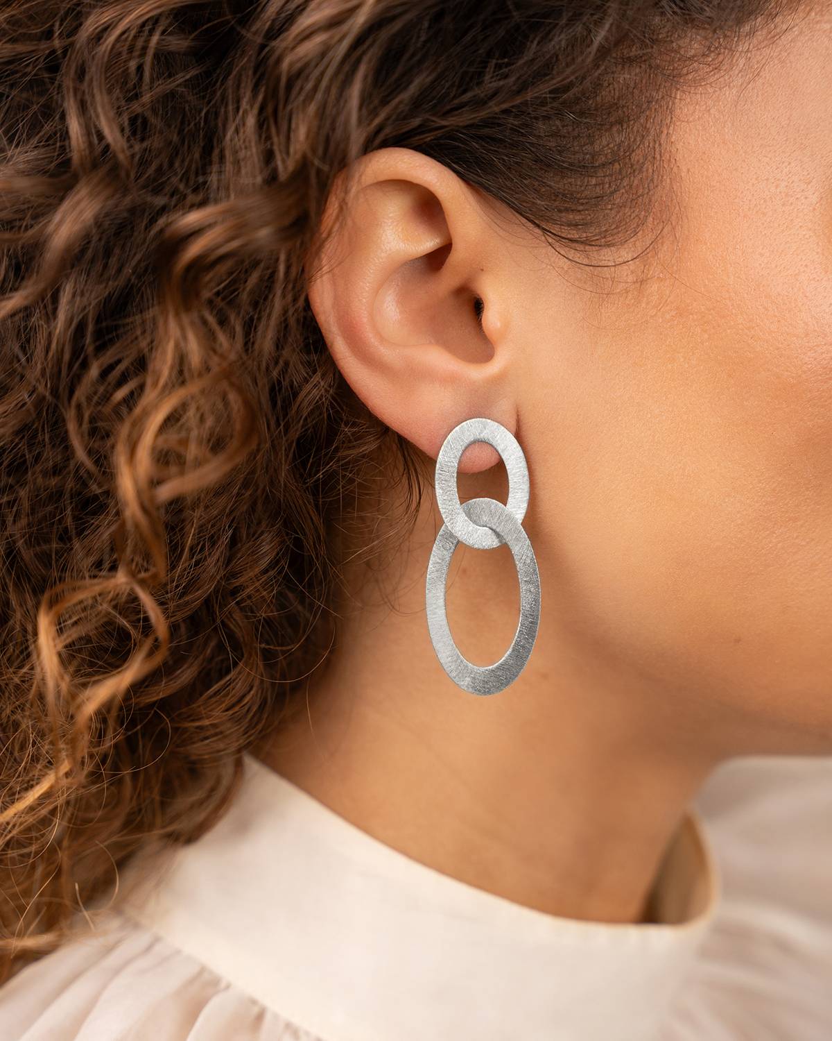 Simple elegance with a modern twist: the Clea Satin Oval earrings by LOTT.gioielli feature two delicately textured, interlocking ovals with a silky matte finish. The silver-plated design plays with light and texture, adding calm, sculptural sophistication to any look – minimalist, chic, and beautifully timeless.